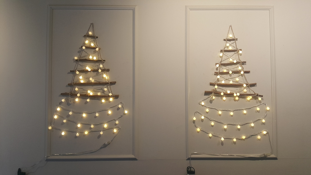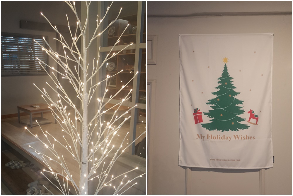 자리 잡은 벽면에도 크리스마스트리 장식이 되어 있는데요