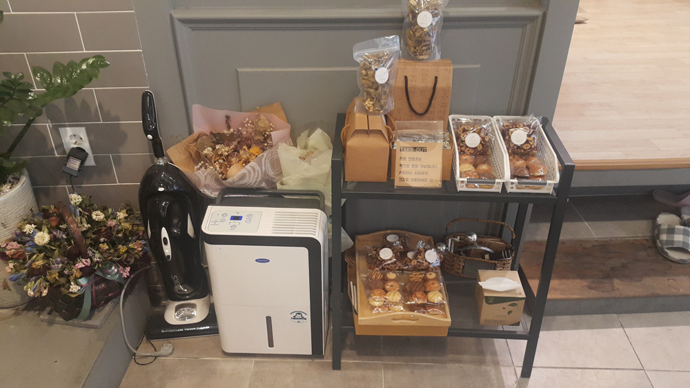 가게 앞 주차금지 표지판 대신 카페 처방전이라는 안내판을 설치하였는데