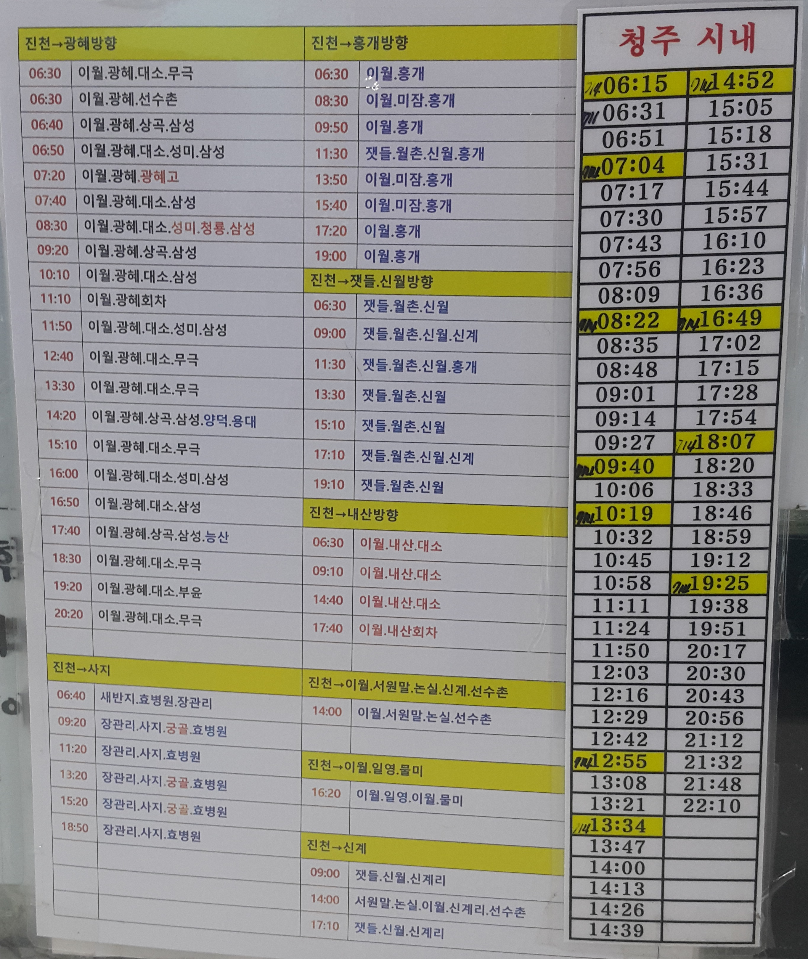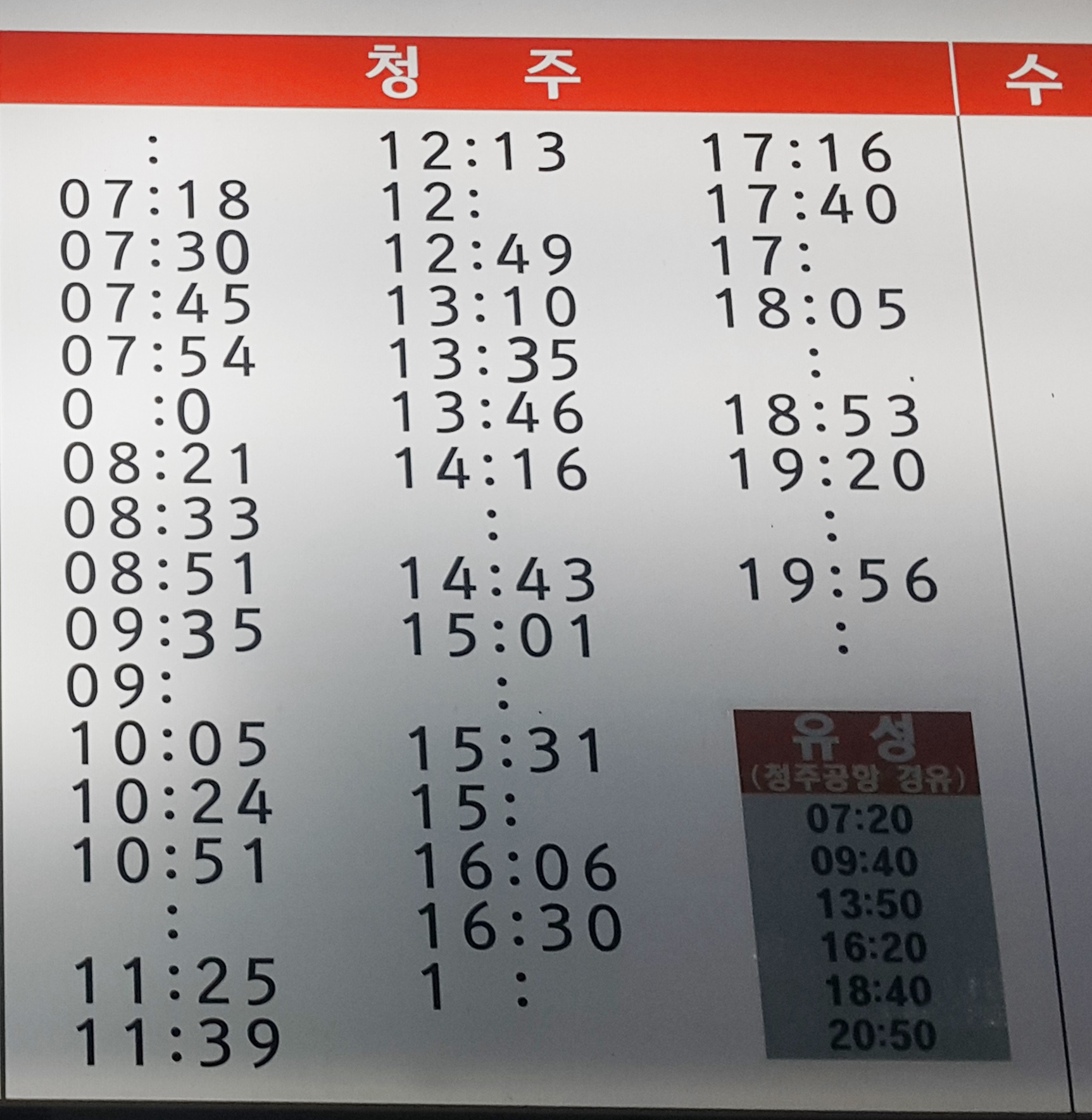 진천시외버스터미널 출발 청주, 유성, 청주공항 방면.
