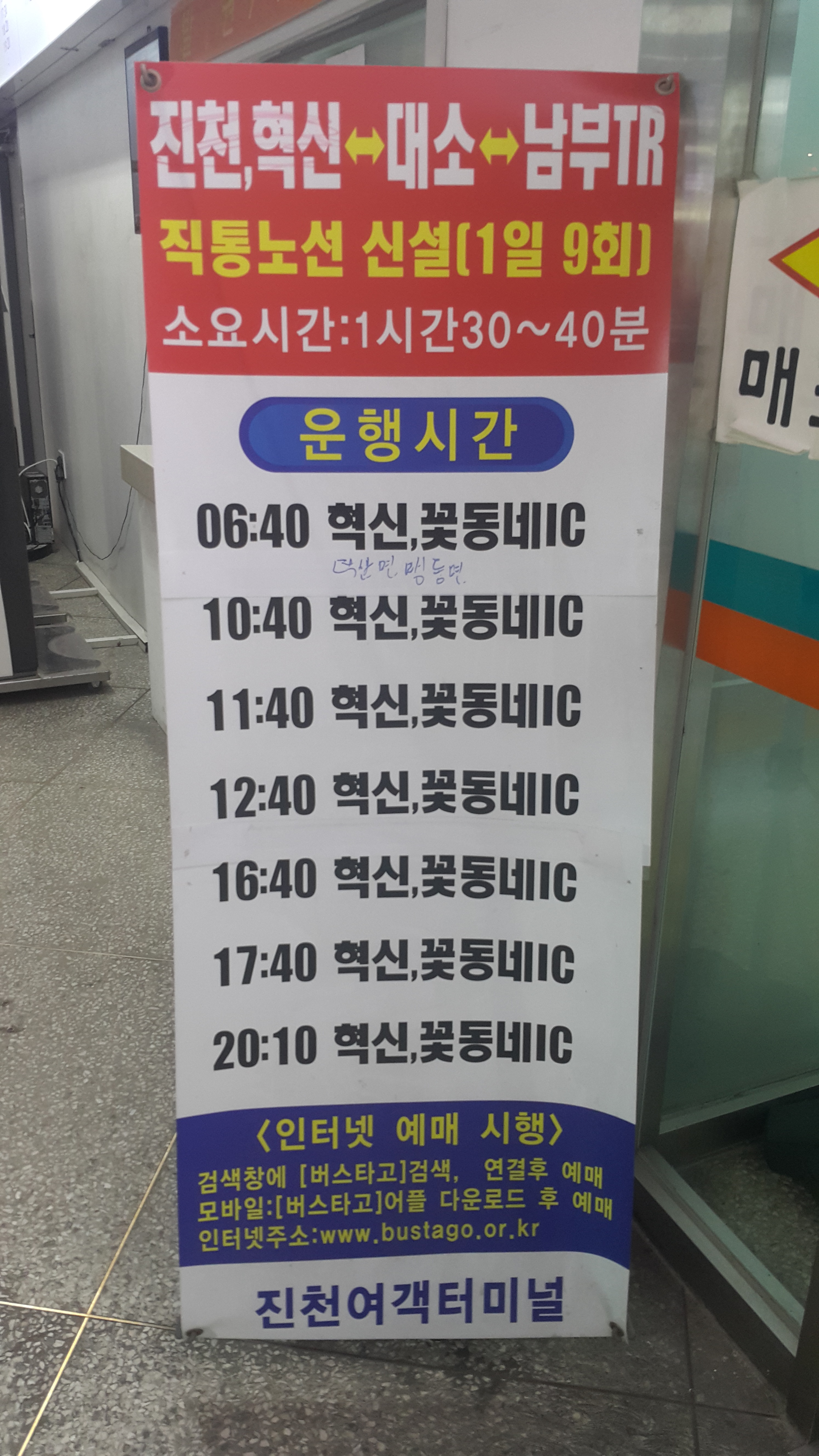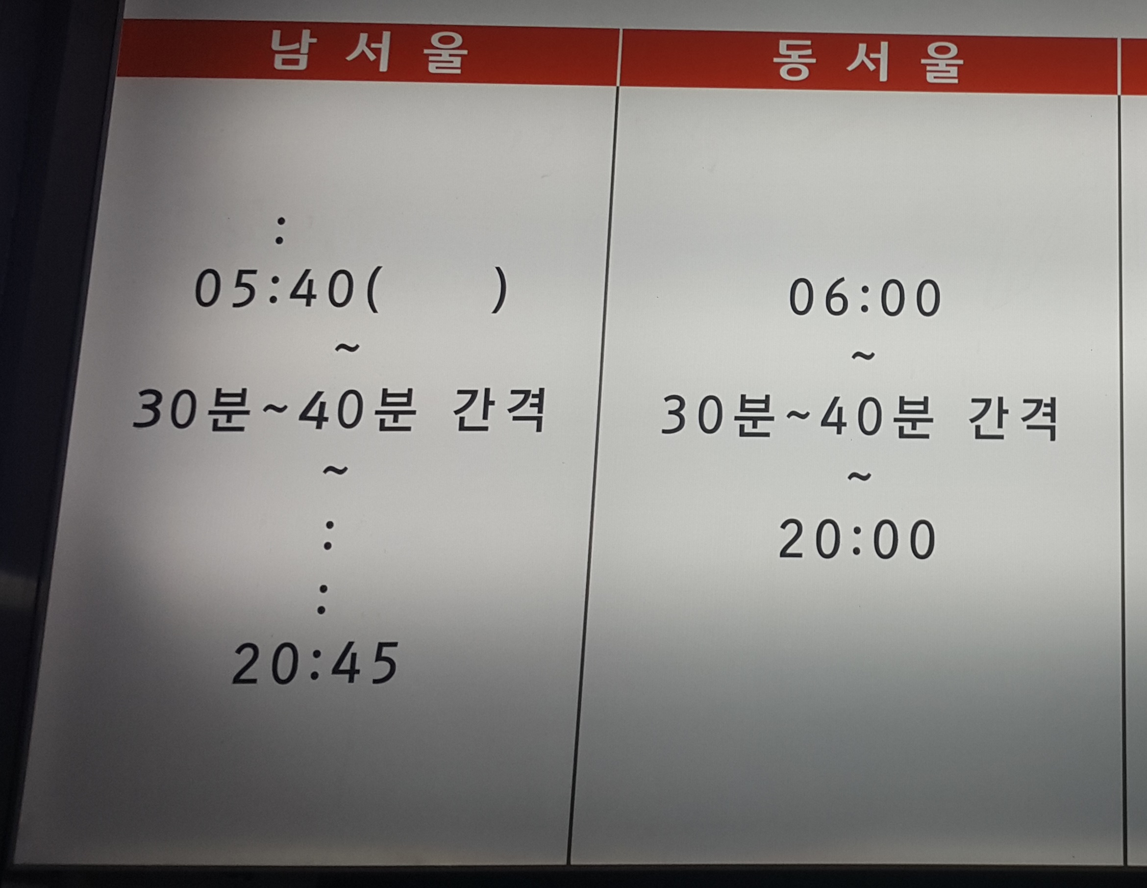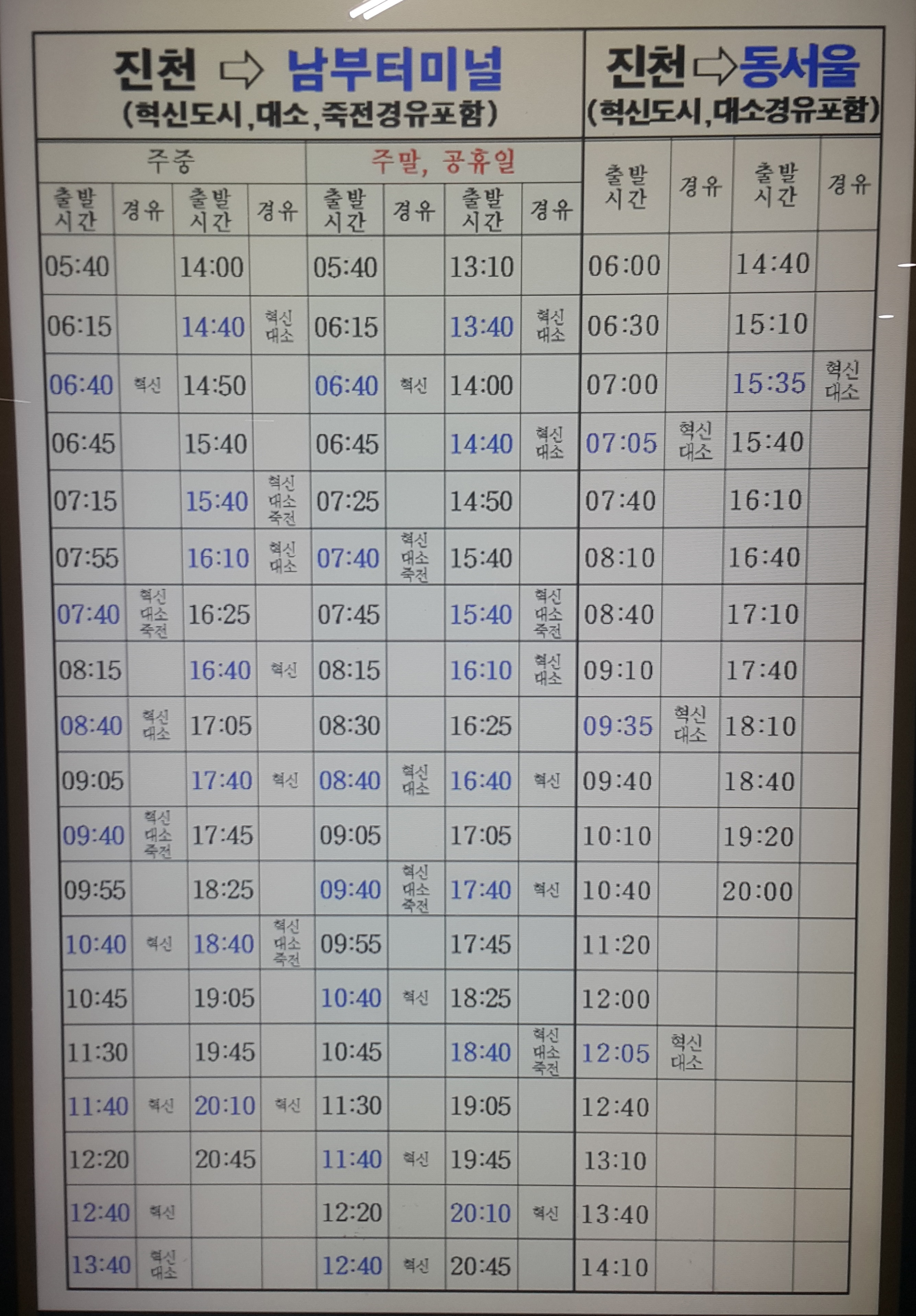 진천시외버스터미널 출발 남서울, 동서울 방면