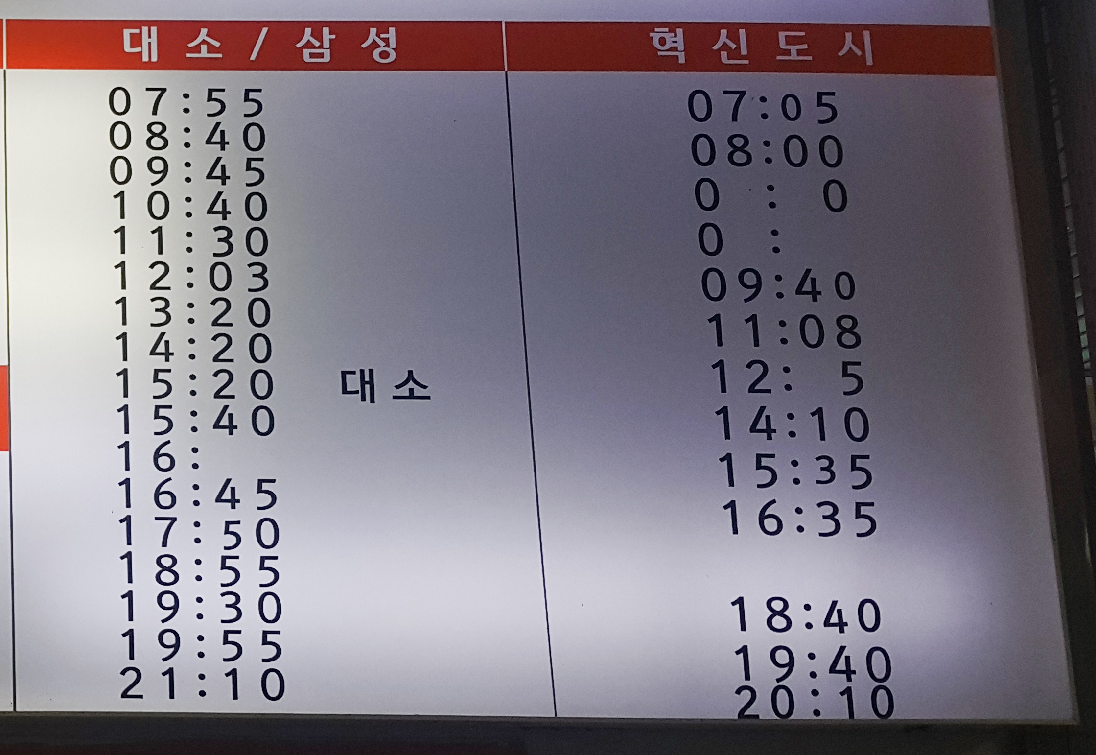 진천시외버스터미널 출발 대소, 삼성, 혁신도시 방면.