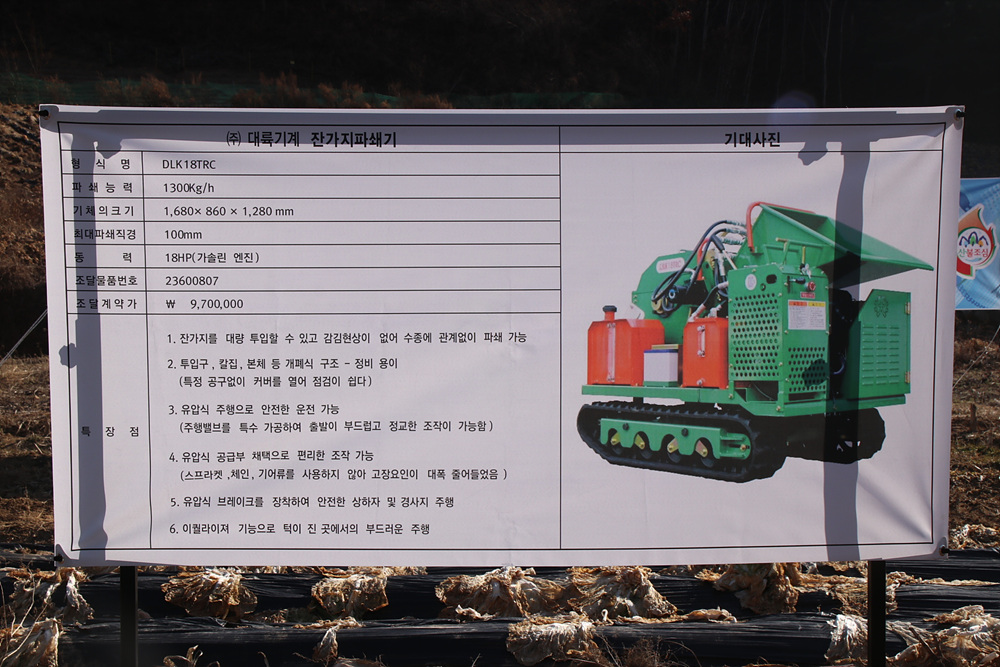 오늘 시연회에는 행정안전부를 비롯하여 산불방지센터 18개 시 군 관계자분이 화재예방을 위하여 함께 참여하였으며 소형 파쇄기는 앞으로 강원도내 18시 군에 보급될 예정이며, 요청한 농민들에게 순차작으로 무상대여 해준다고 합니다.