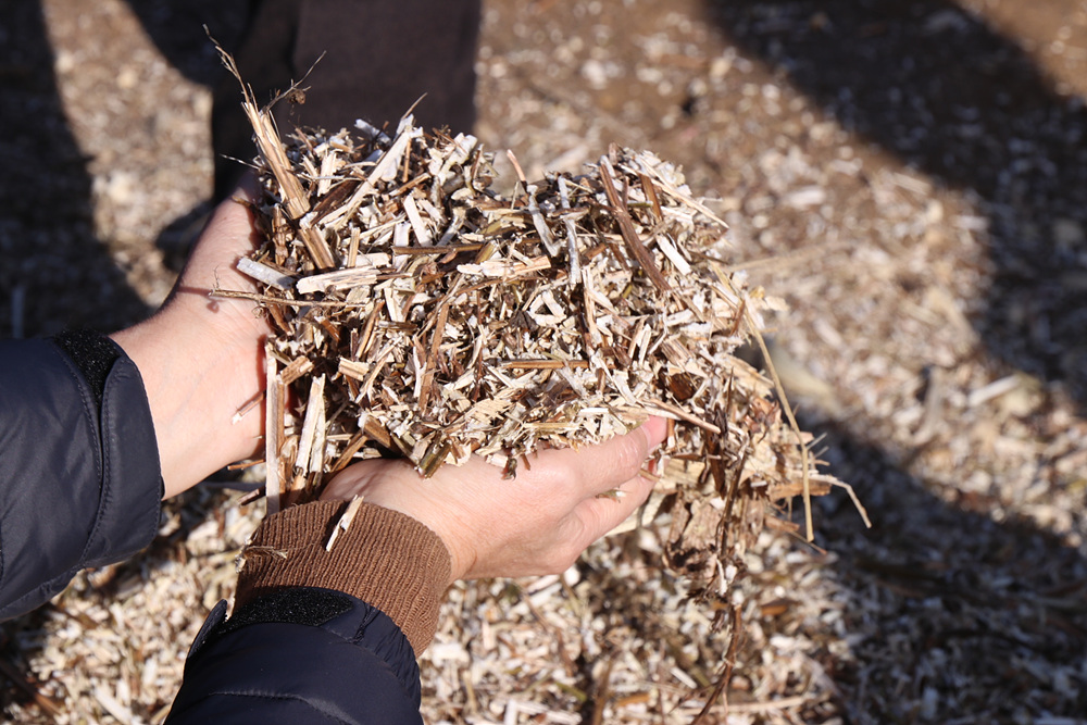 잘게 분쇄하여 논에 뿌려 거름이 되게 하는 방법입니다.