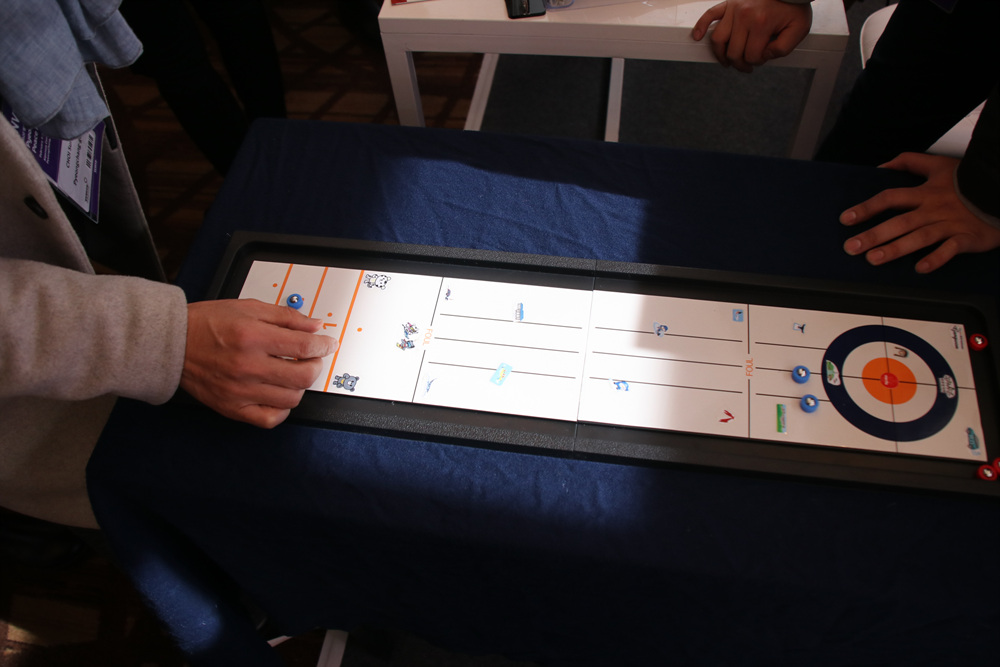 손가락으로 구슬을 쳐서 저 원안에 넣으면 선물을 준답니다.