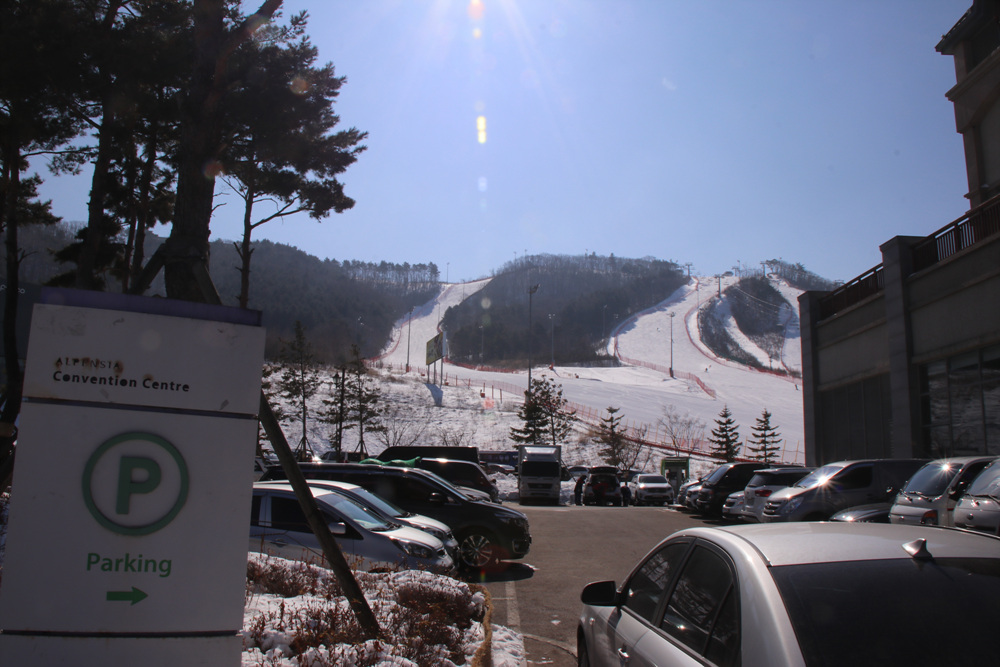 알펜시아 리조트에 하안 눈이 쌓여 스키를 즐기러 오시는 분이 많았습니다.