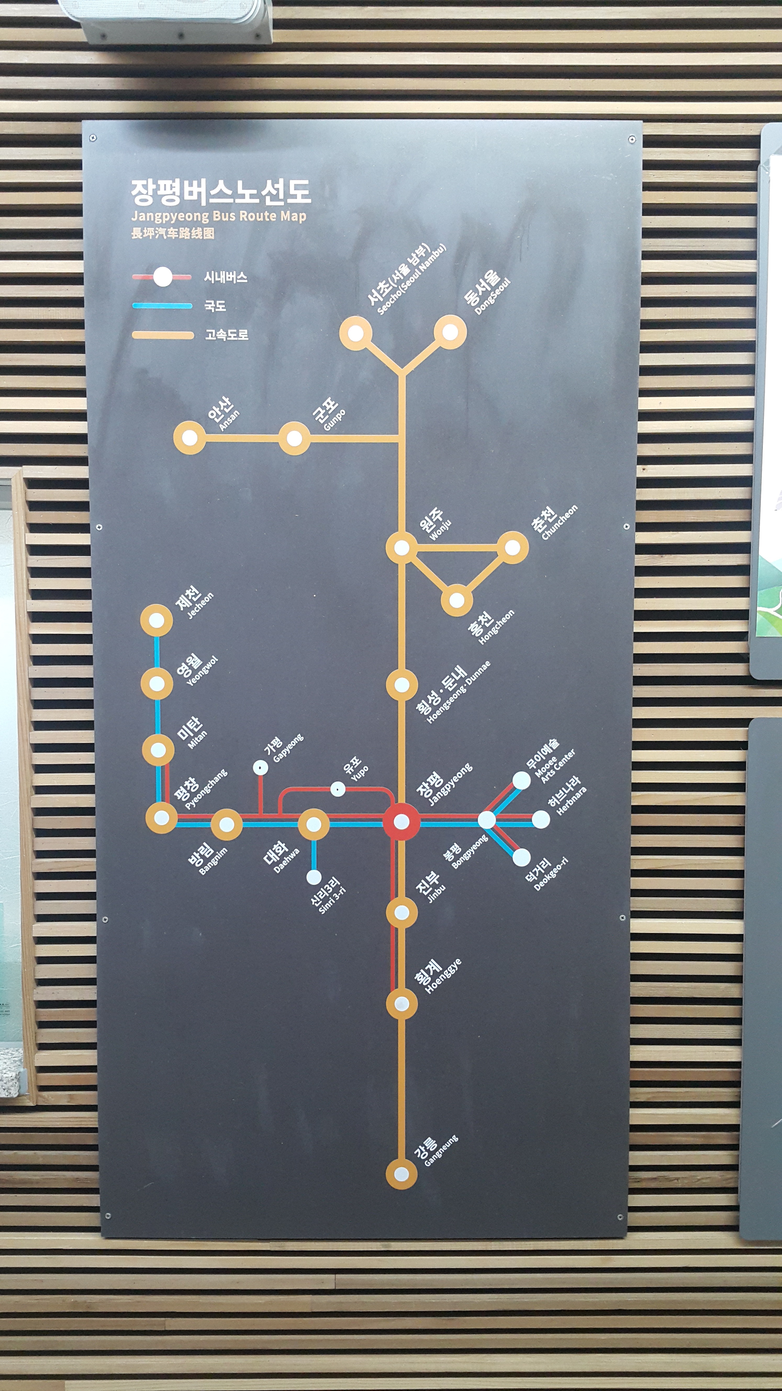 장평 출발 서오(서울 남부) 군포, 안산, 구리, 의정부.
