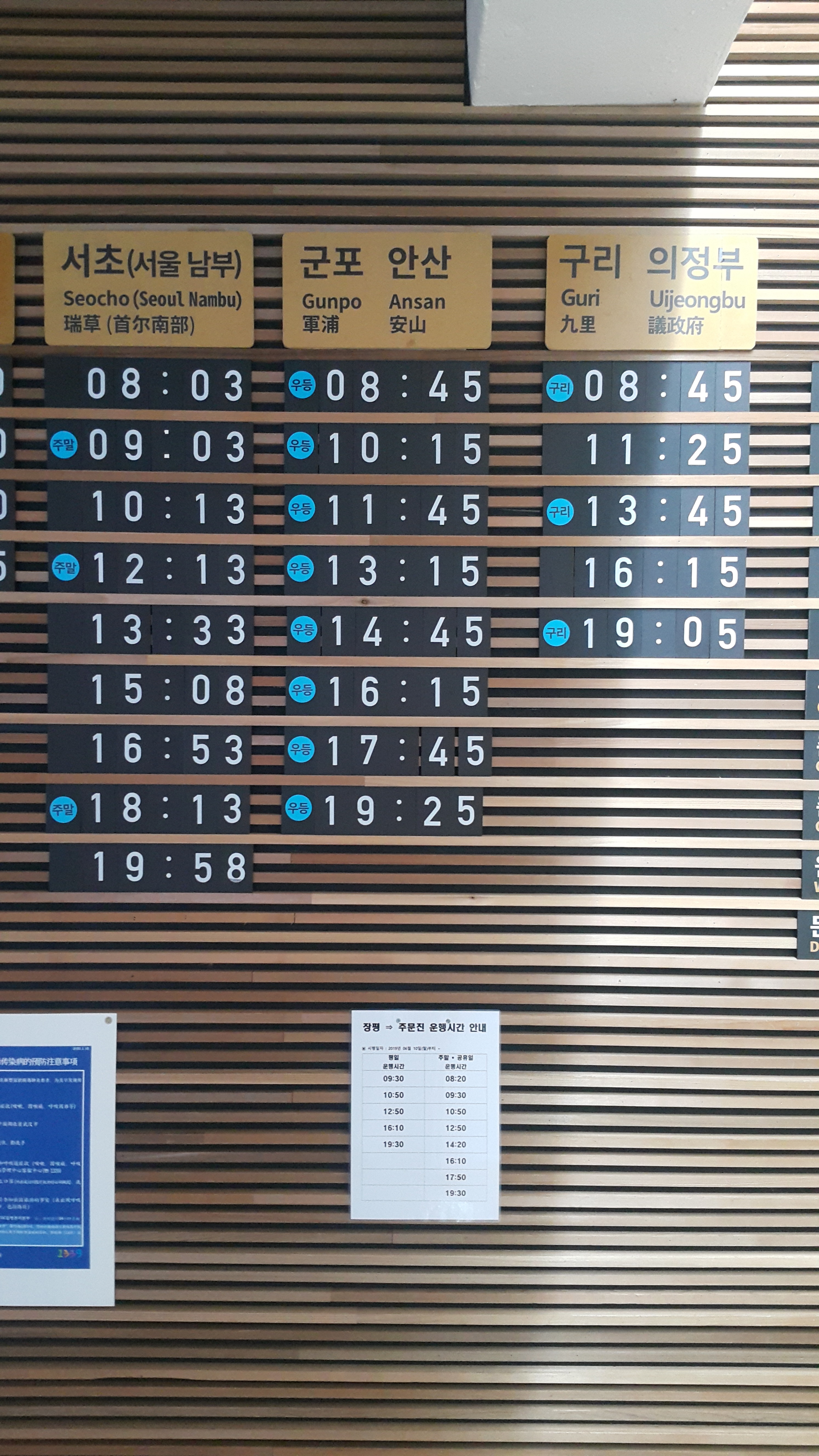 장평 출발 서오(서울 남부) 군포, 안산, 구리, 의정부.