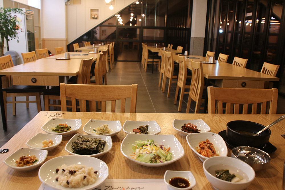 먼저 테이블에 기본 반찬이 세팅됩니다.