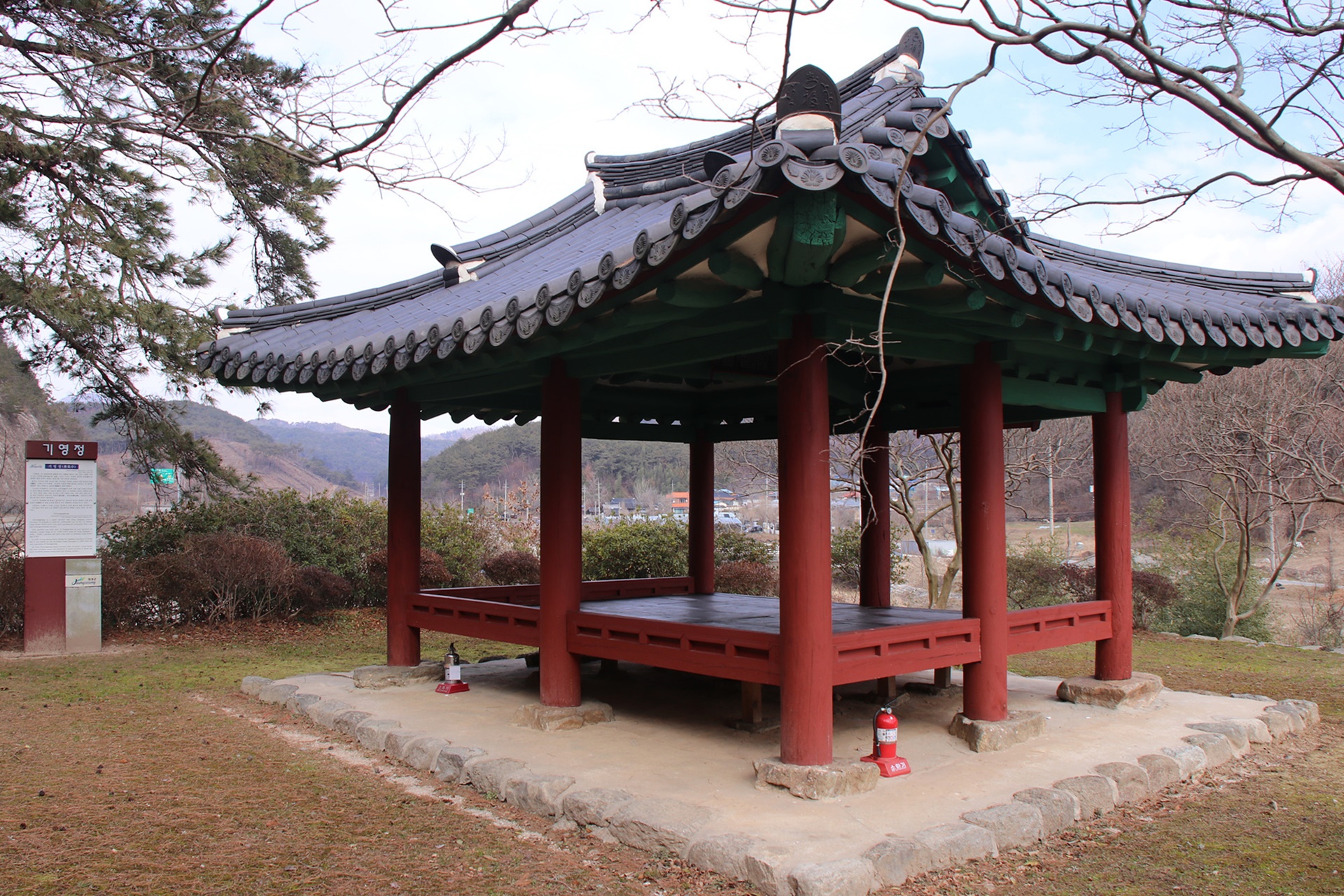 기영정은 정면 2칸, 측면 2칸의 골기와 팔작지붕 건물입니다.