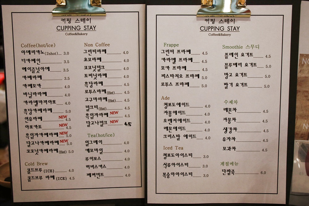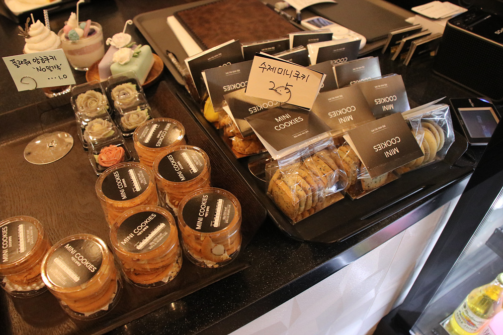 메뉴판을 보니 다양한 종류가 있으며 아메리카노와 수제쿠키 그리고 플라워 앙금쿠키를 주문하였습니다.