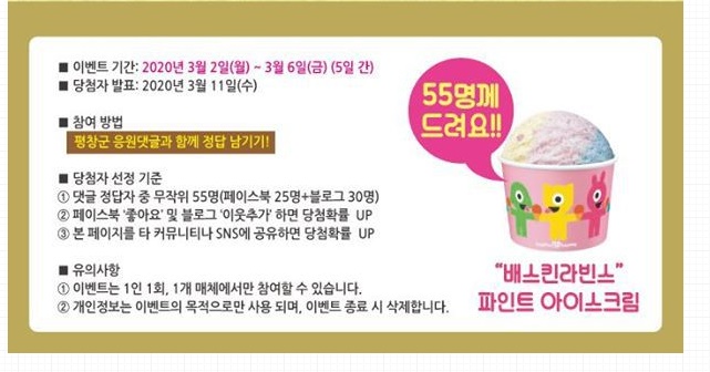 경품은 베스킨라빈스 파인트 아이스크림인데