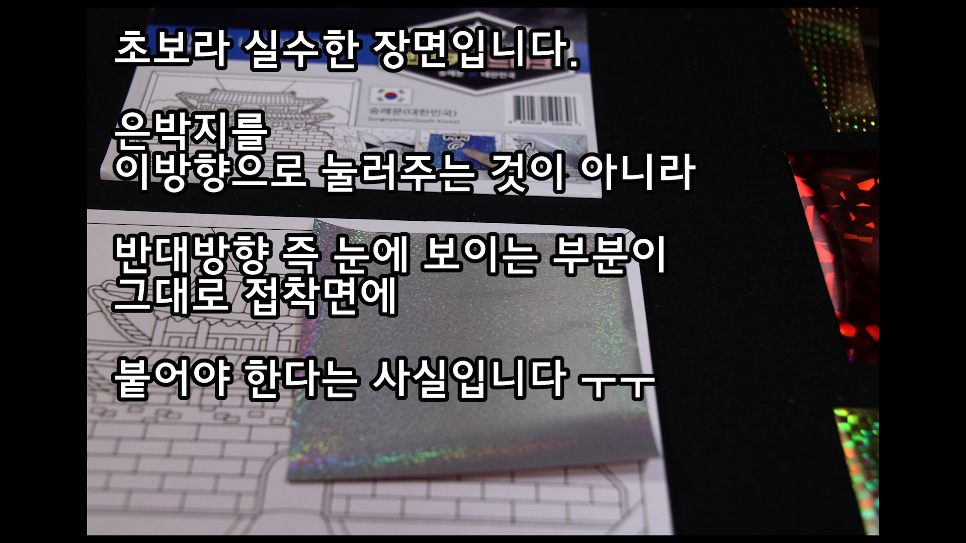 그곳에 은박지를 붙여야 하는데 제가 그만 실수를 하고 말았네요