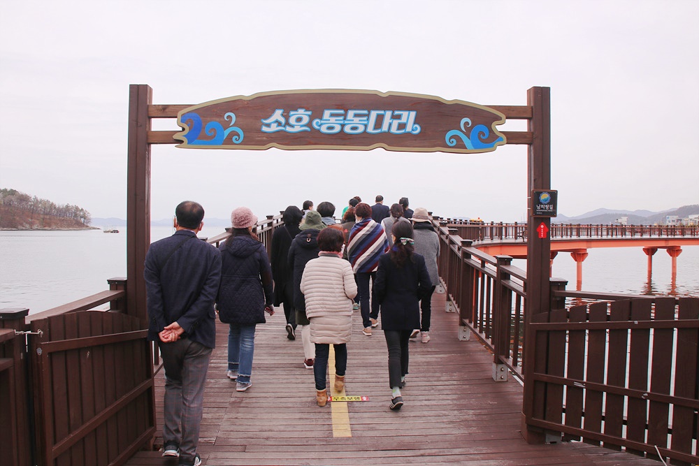 사랑하는 연인과 함께 걷는 물위의 데크 산책로입니다.