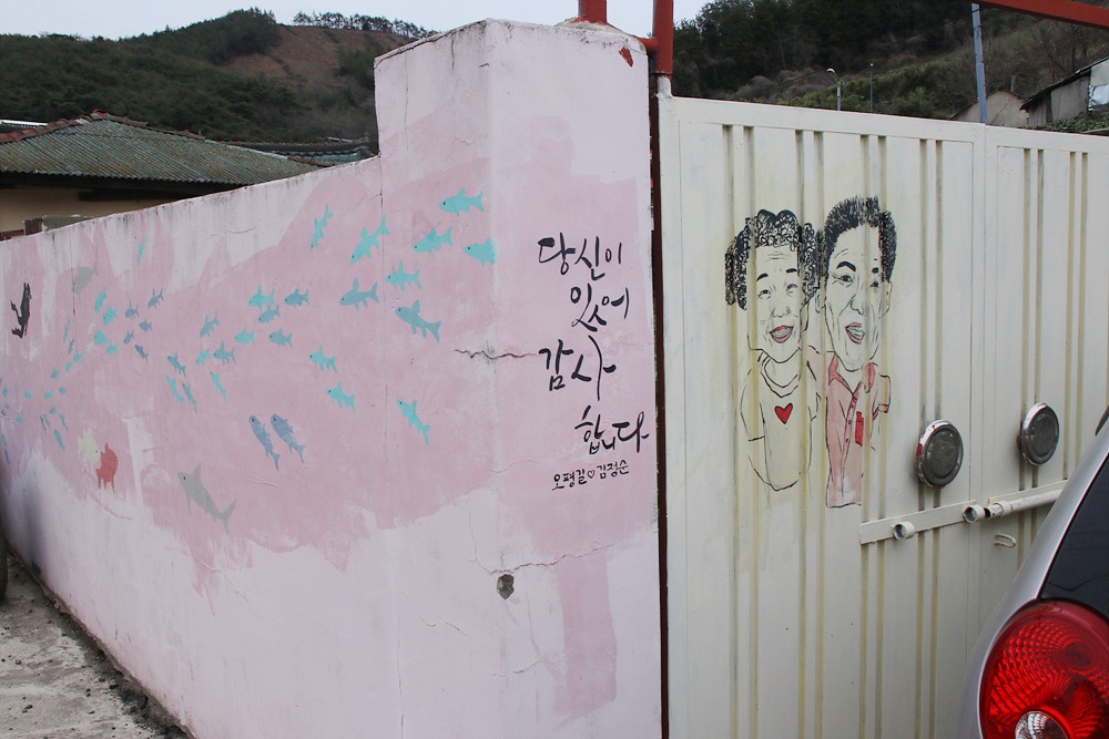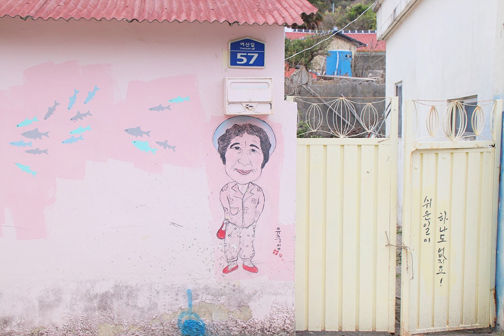 낭도의 마을 주택가에는 바다를 주제로 하는 벽화가 그려져 있고