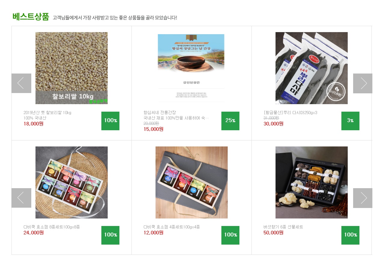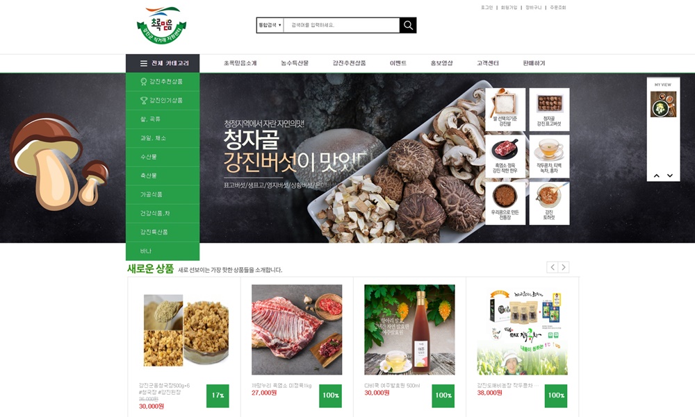 홈페이지에 들어가시면 강진의 새로운 상품 리스트.
