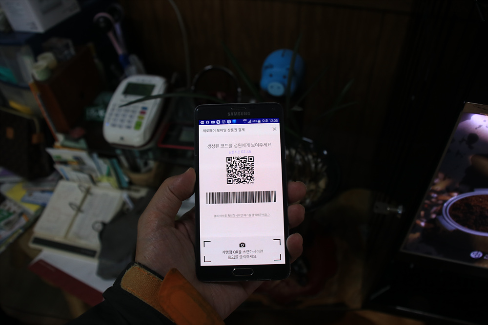 모바일강원상품권을 보여주니 비치하고 있던 제로페이 QR코드를 보어주시면서