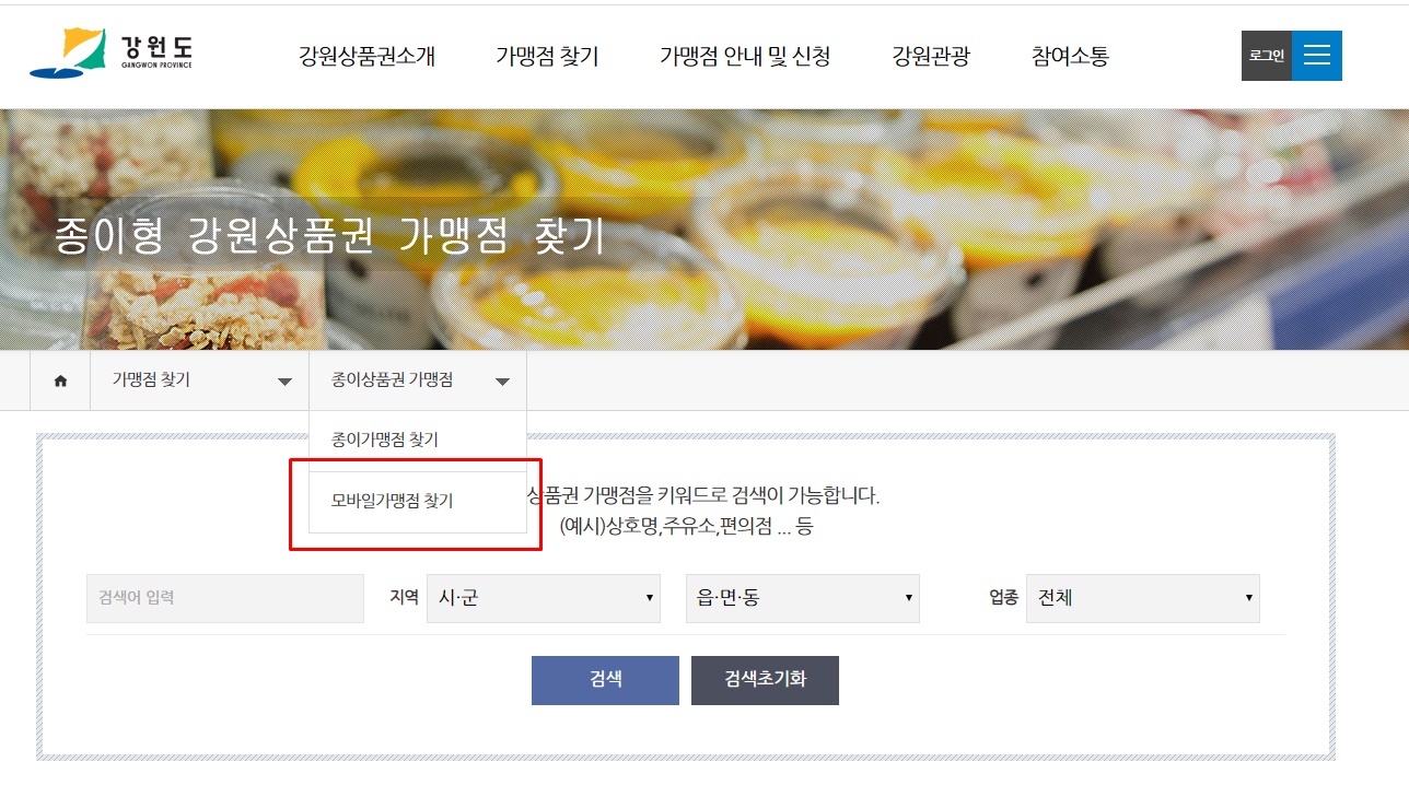 강원사랑상품권은 종이상품권과 모바일상품권이 있는데 가맹점에 따라 종이상품권 가맹점과 모바일상품권 가맹점이