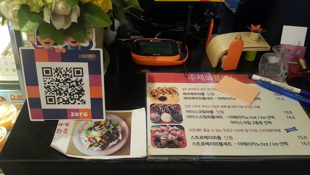 카페에 가서 제로페이 QR코드가 비치되어 있는것을 확인하고 커피와 디저트를 주문한 뒤