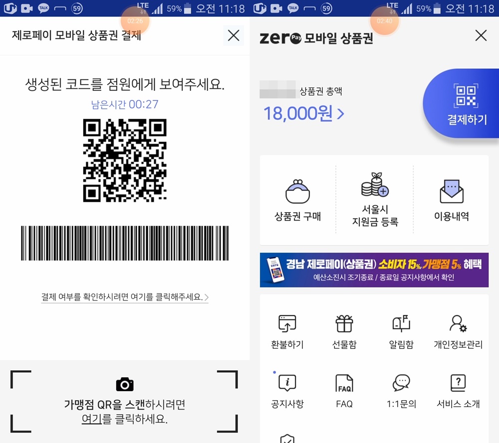 처음 사용하는 모바일 강원사랑상품권에 많은 혼란을 겪었다가