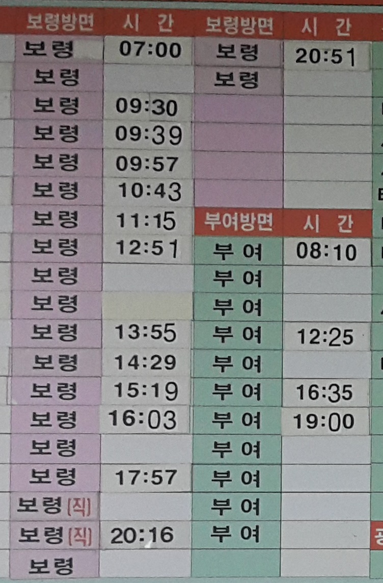 청양시외버스터미널 출발 보령, 부여 방면.