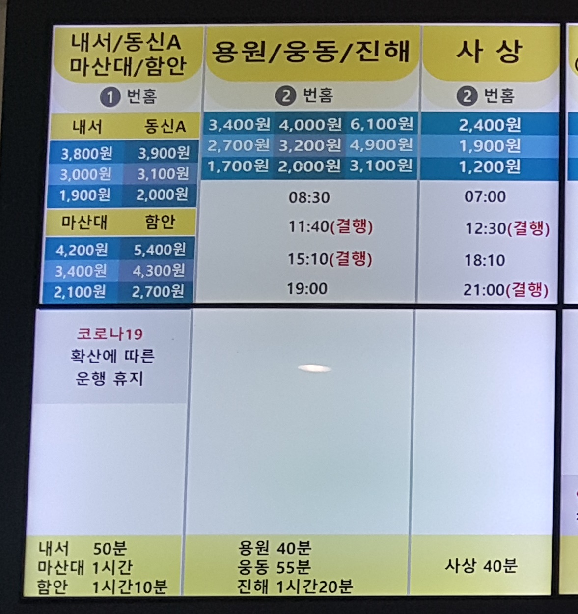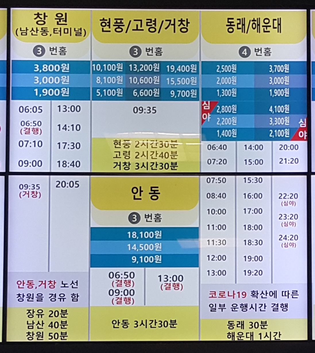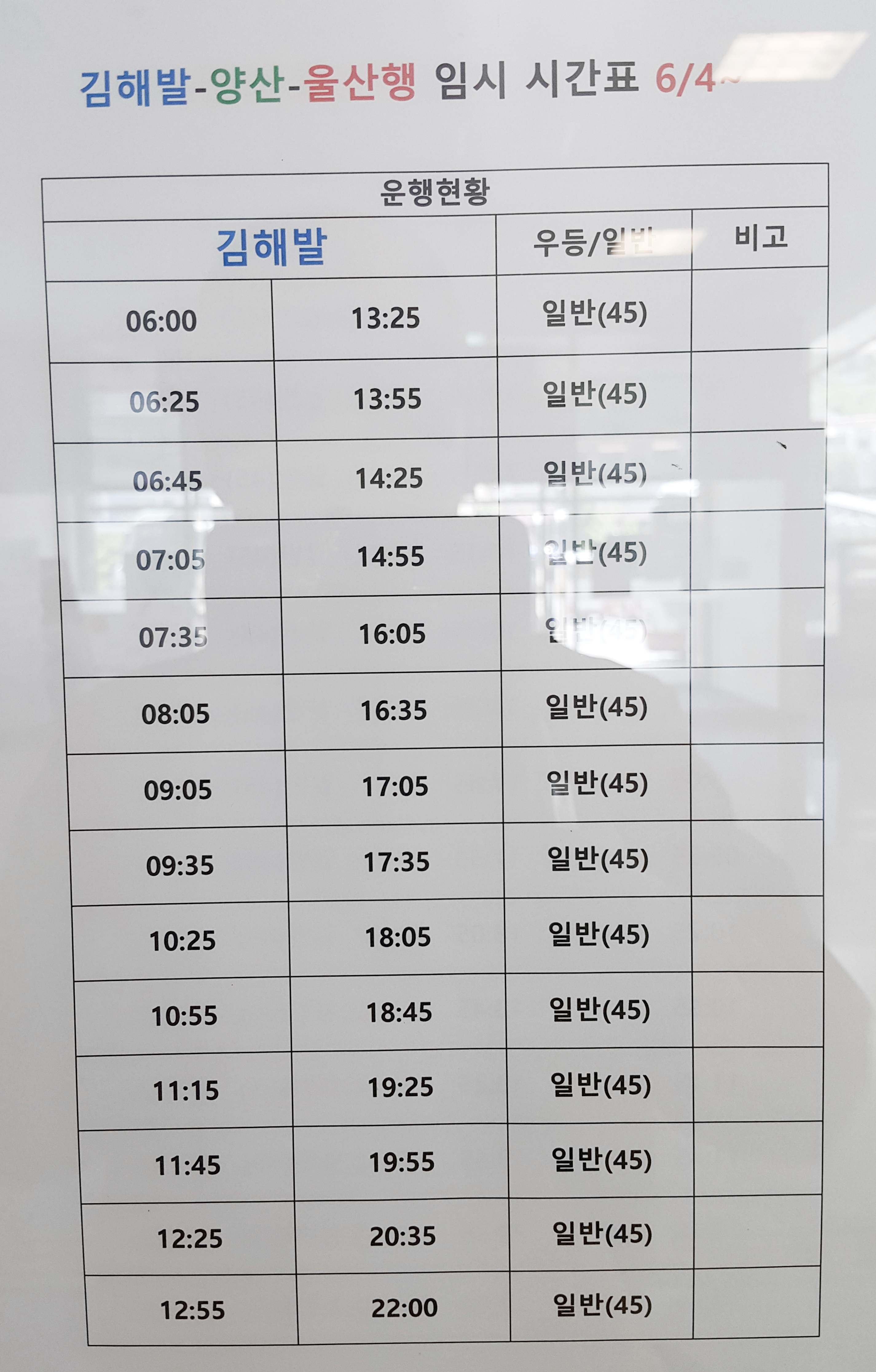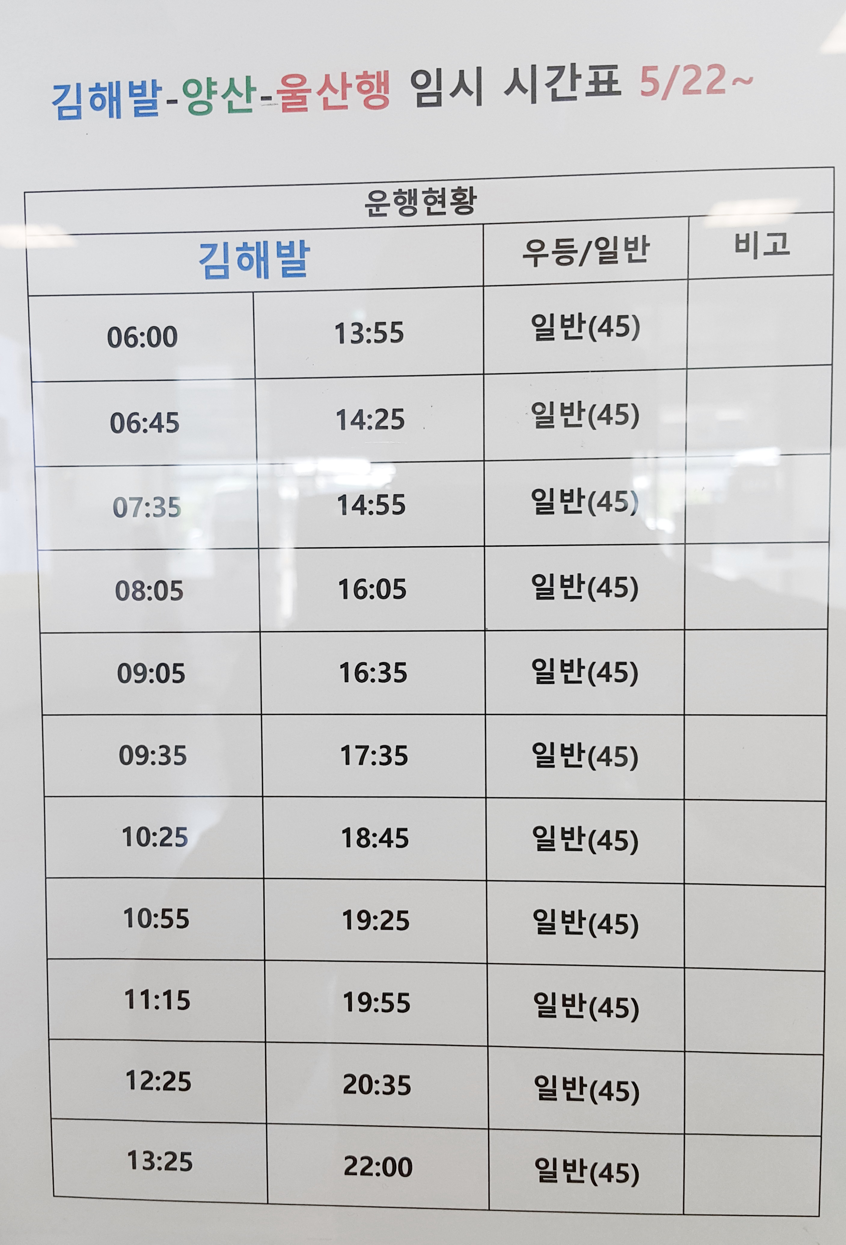김해 창원 운행시간 안내문