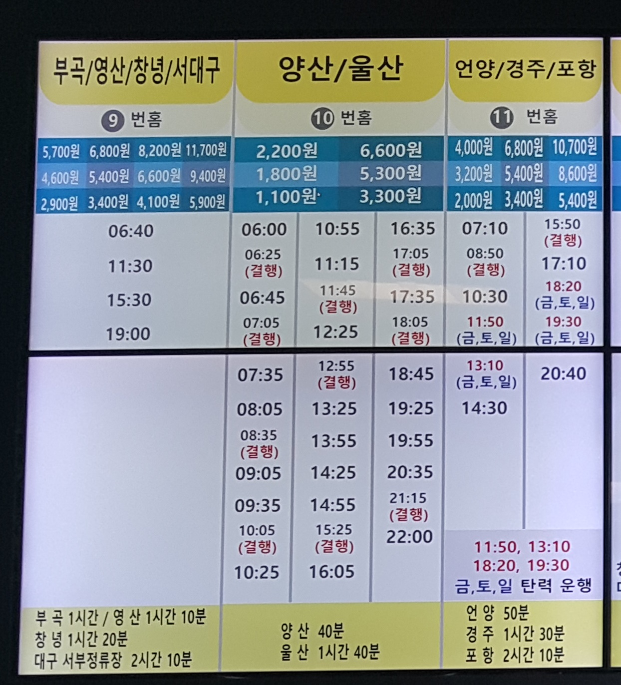 김해 출발 부곡, 영산, 창녕, 서대구, 양산, 울산, 언양, 경주, 포항 방면.