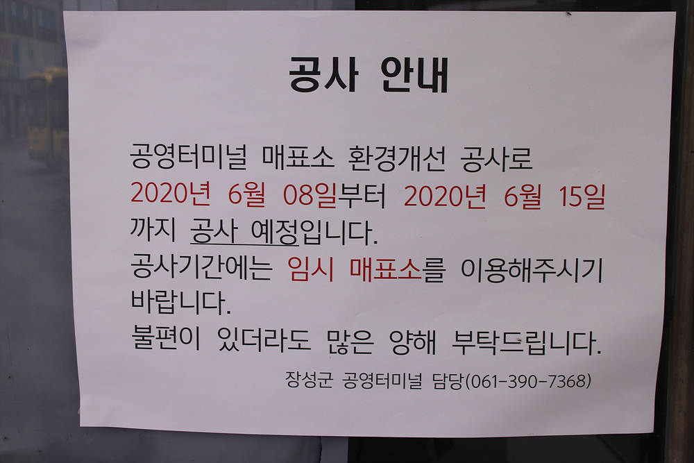 장성시외버스터미널은 안내간판에는 장성공용터미널로 표기되어 있습니다.