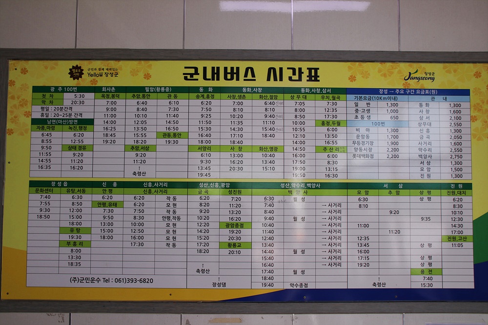 장성출발은 오전 5시 30분 부터 오후 8시 30분 까지입니다.