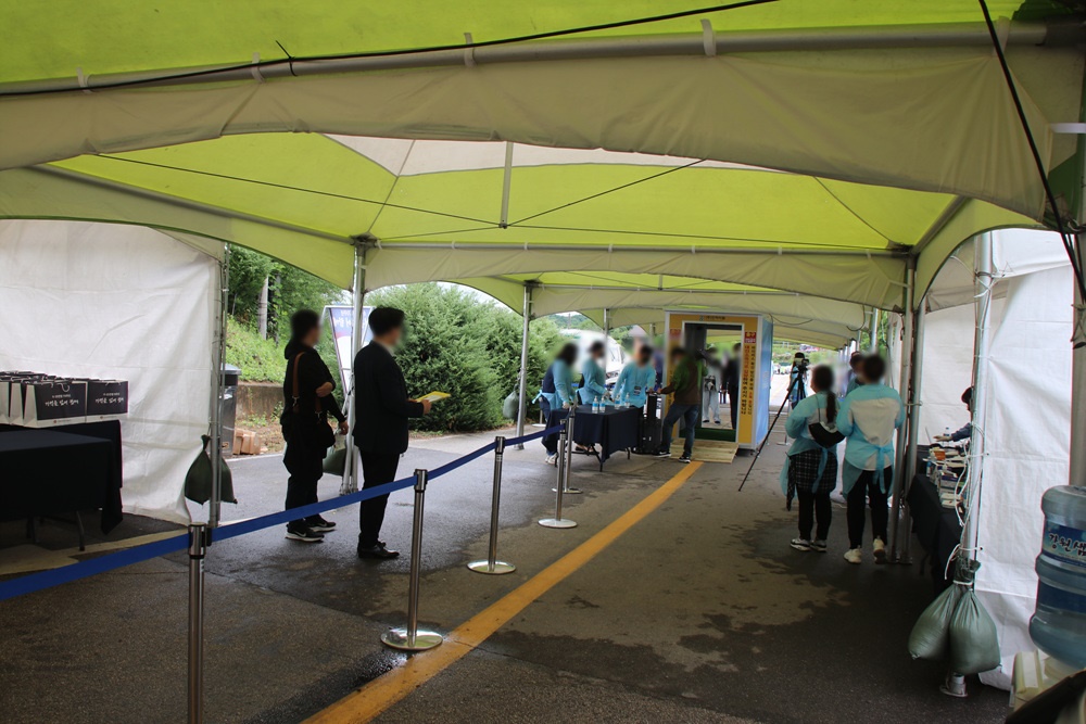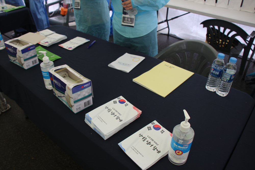 행사장 입구에는 코로나 19를 예방하기 위하여 소독터널과 손소독제를 준비하였으며