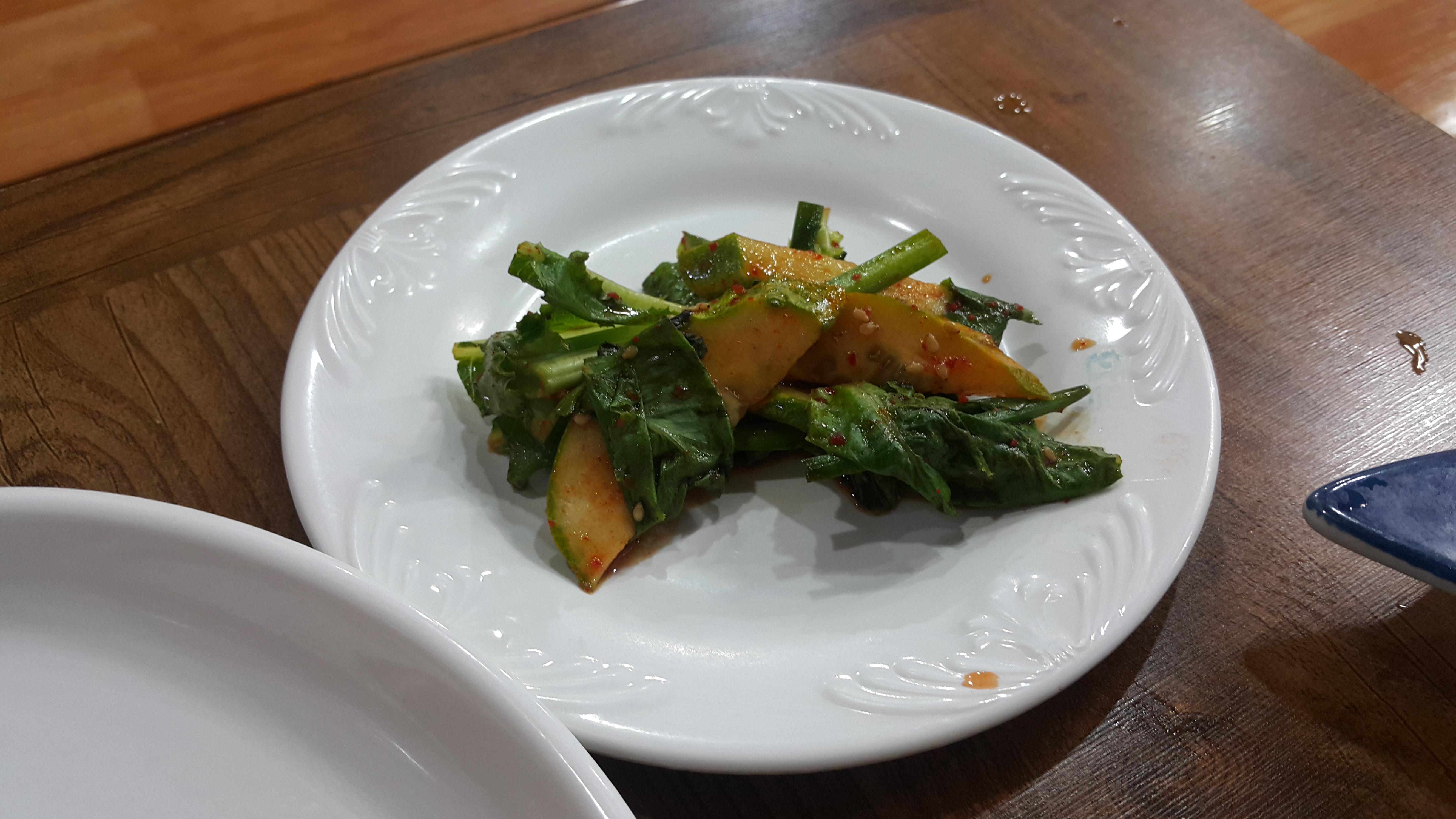 호박과 돼지고기가 들어가 있어 저에게 있어서는 황금 공깃밥과 애호박찌개 이것만 있어도