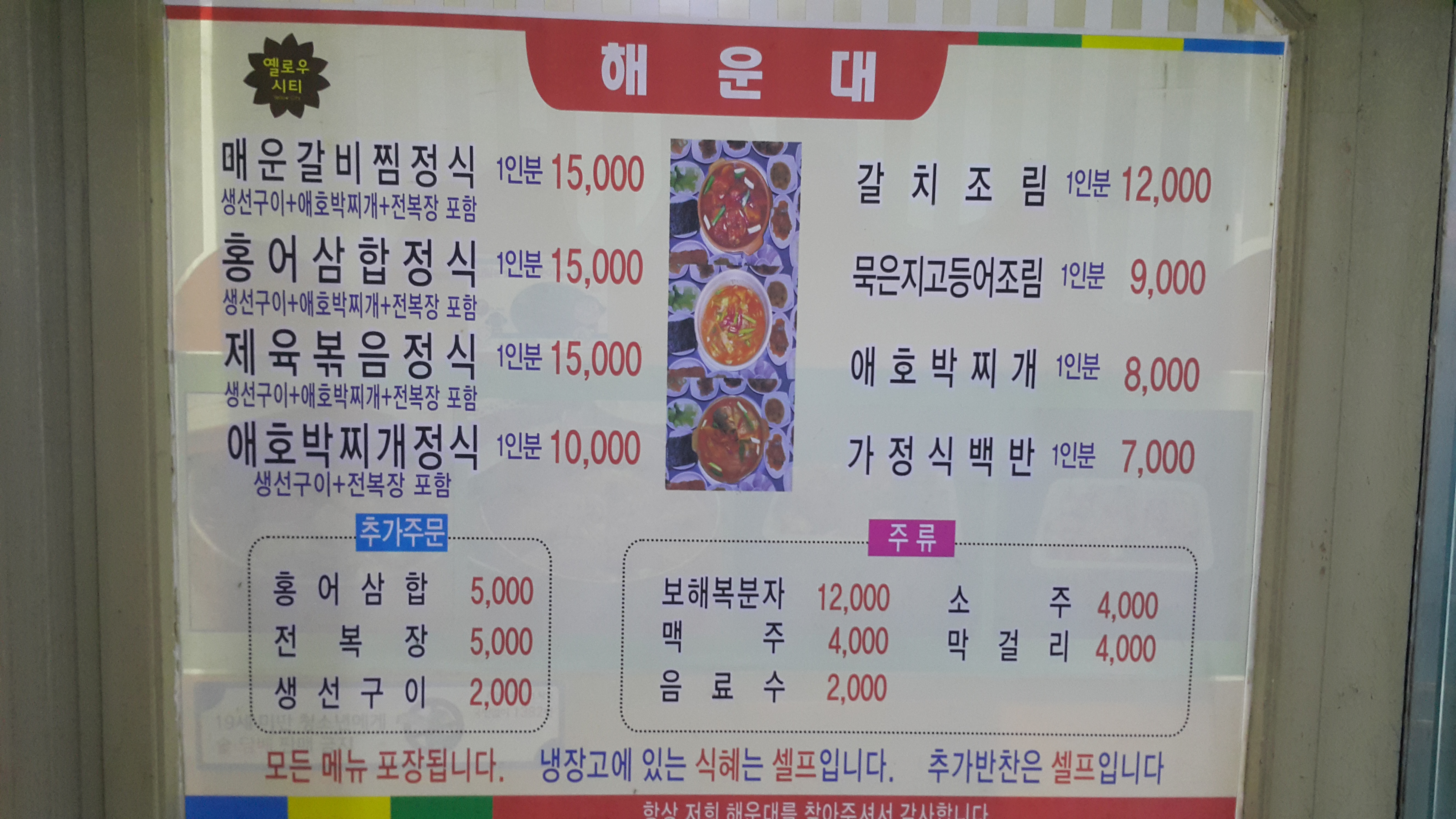이곳 장성맛집 해운대식당은 친절도민의집이기도 하며 모범음식점이랍니다.