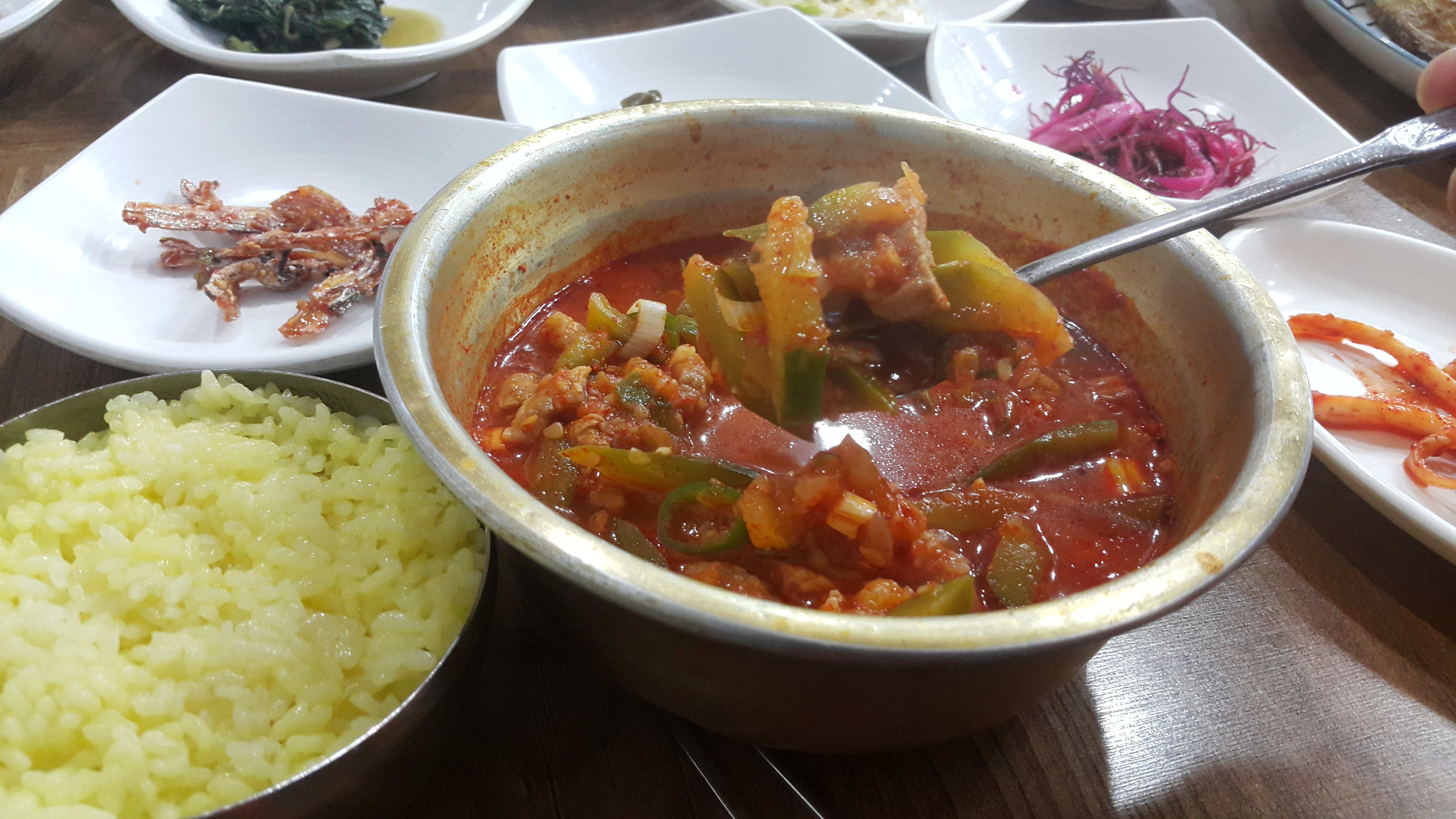 호박과 돼지고기가 들어가 있어 저에게 있어서는 황금 공깃밥과 애호박찌개 이것만 있어도