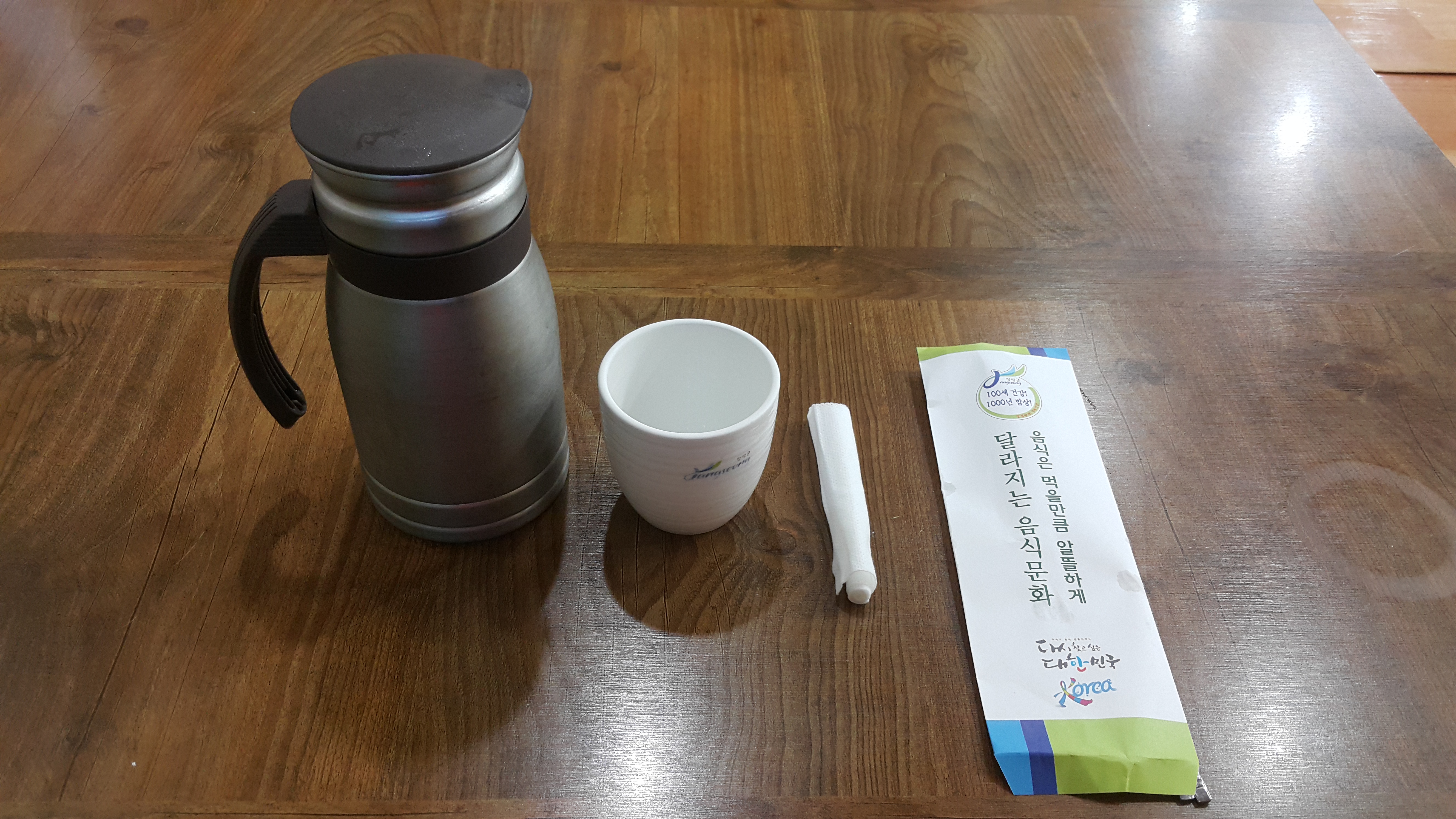 그 이유는 물을 손님상에 내어줄 때 플라스틱 물병이 아닌 스텐 물병을 내어 주며 수저도 전용 케이스에 넣어