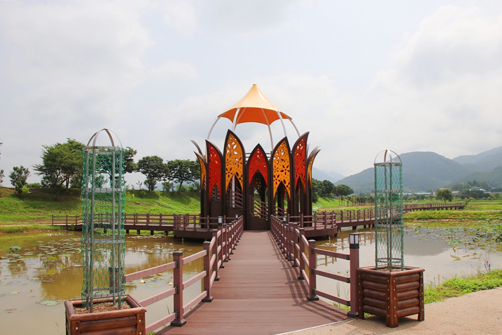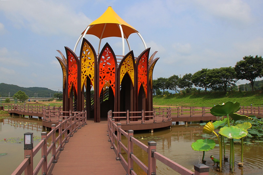 황미르랜드 연꽃단지 중앙에는 연꽃 모양을 한 전망대가 서있는데요
