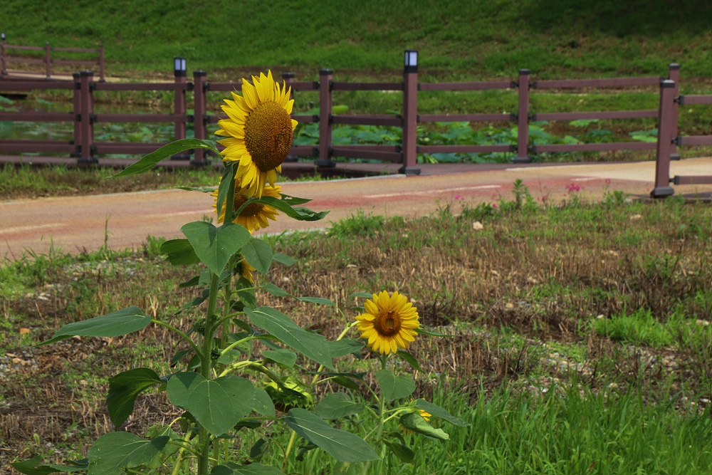 한쪽에는 해바라기가 피어 있어 곧 해바라기의 계절이 올 것이라는 것을 알리고 있습니다.