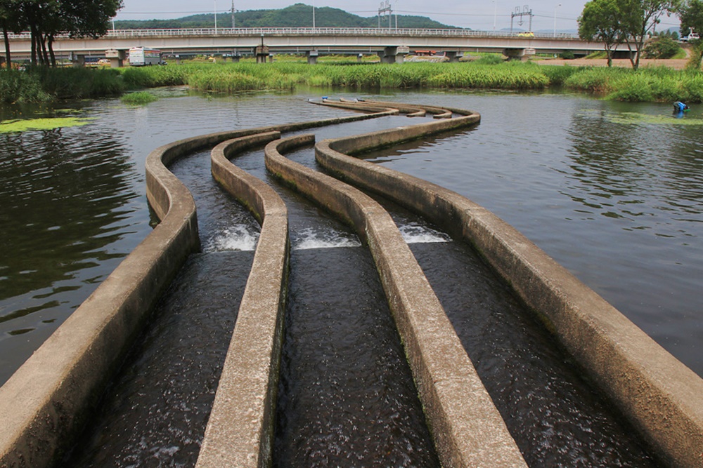 생태수로를 만들어 놓아 하류에 있던 물고기들이 상류로 쉽게 올라갈 수 있도록 만들어 놓았는데요