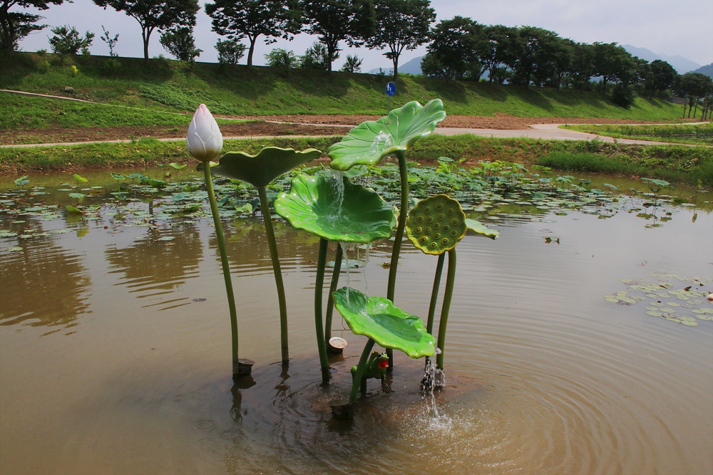 연잎으로 분수가 솟아나고 그 주위로 연꽃이 봉오리가 피어있는 모습은 하나의 작룸입니다.
