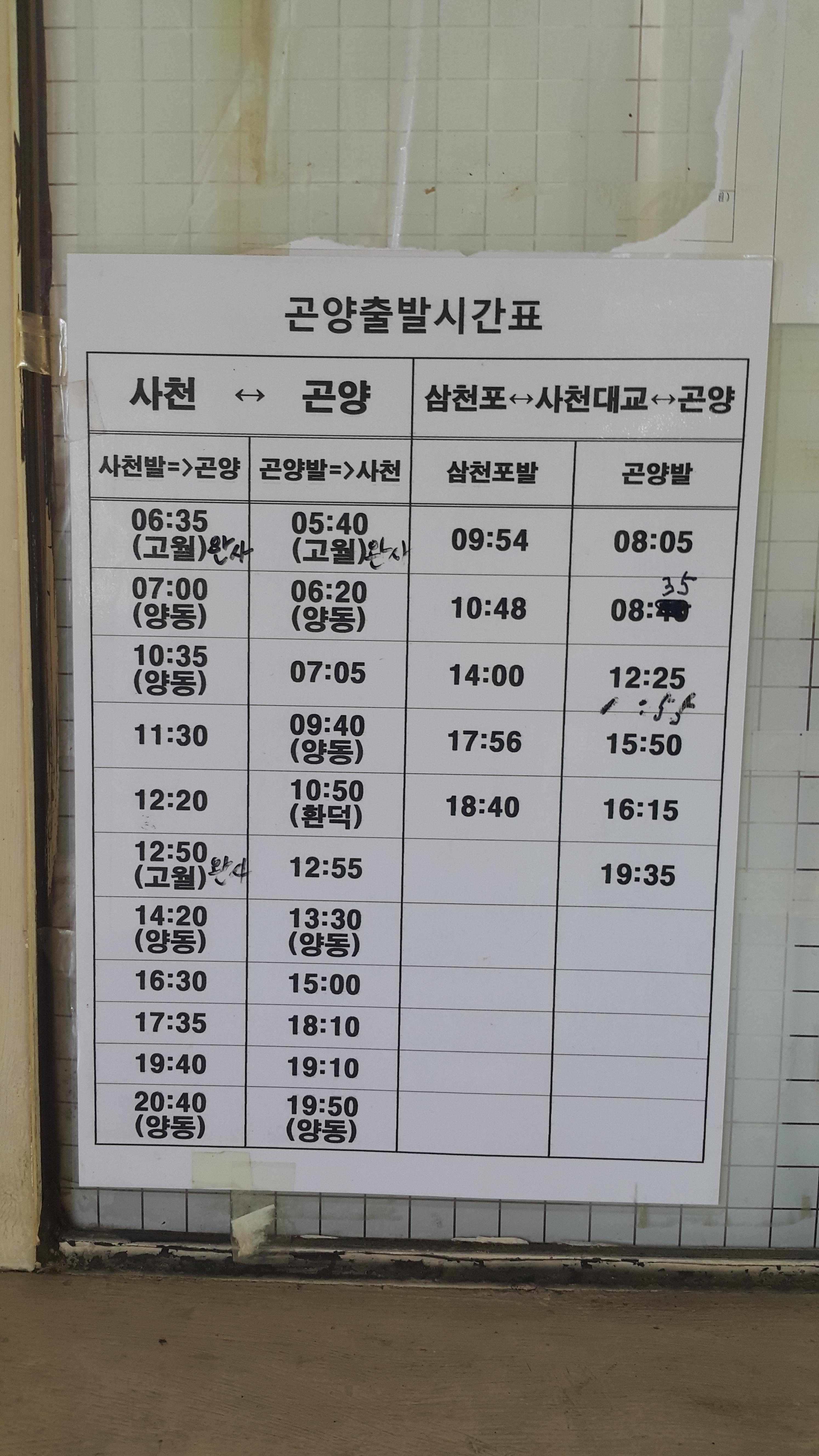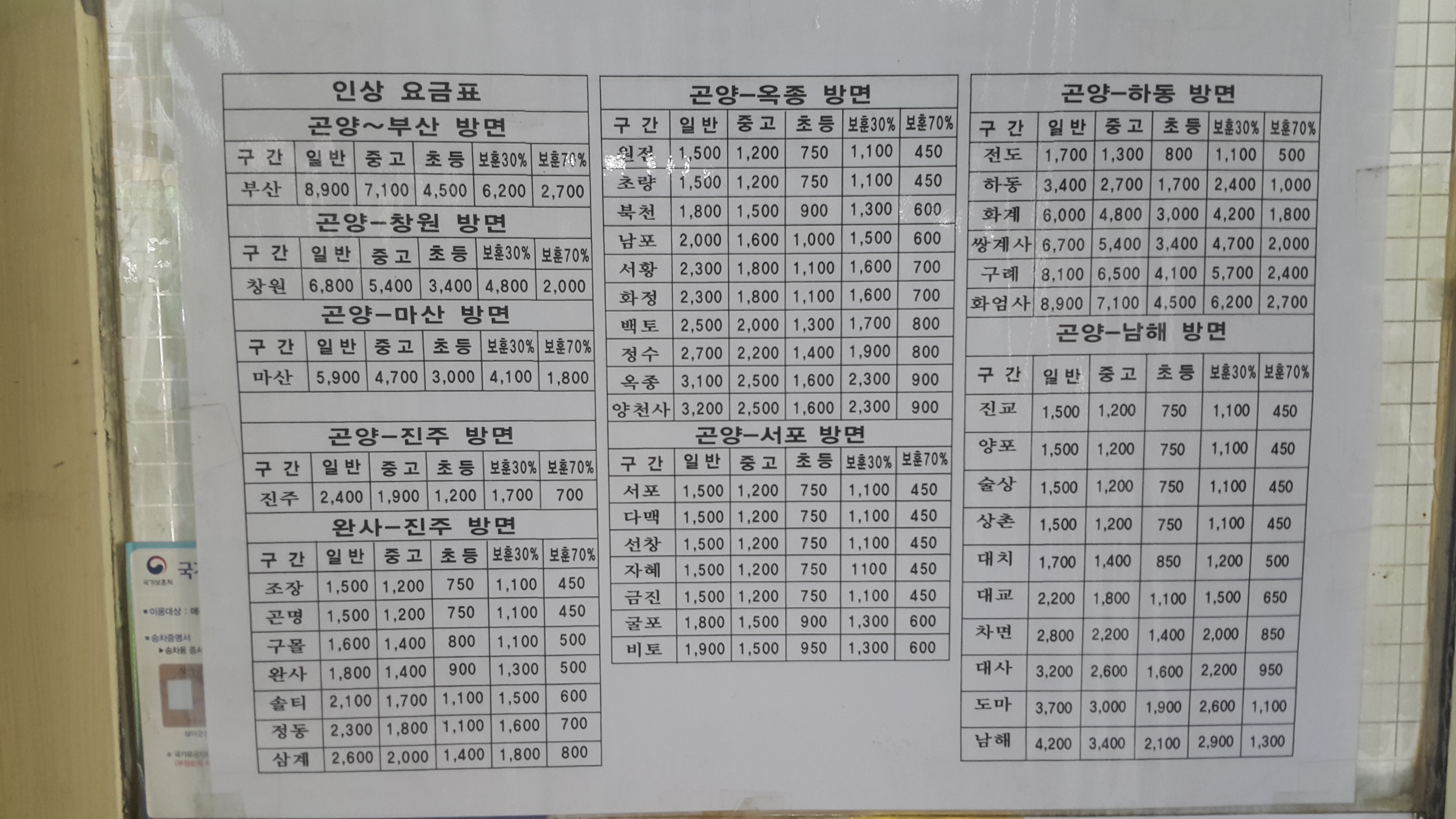 곤양 출발 부산, 진주, 마산, 창원, 하동, 진교, 남해, 서포, 옥종, 완사 방면.