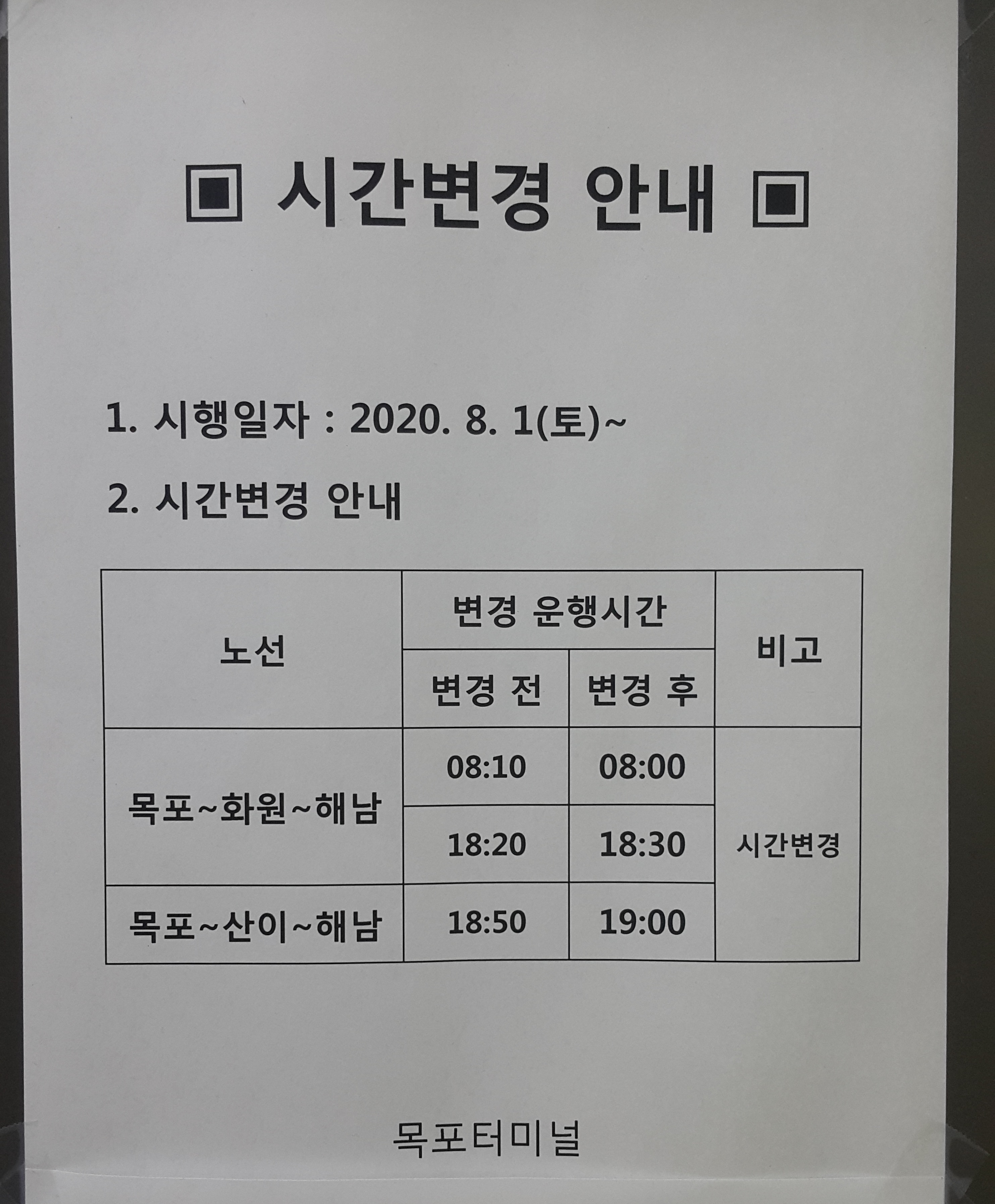 목포~산이~해남 시간 변경