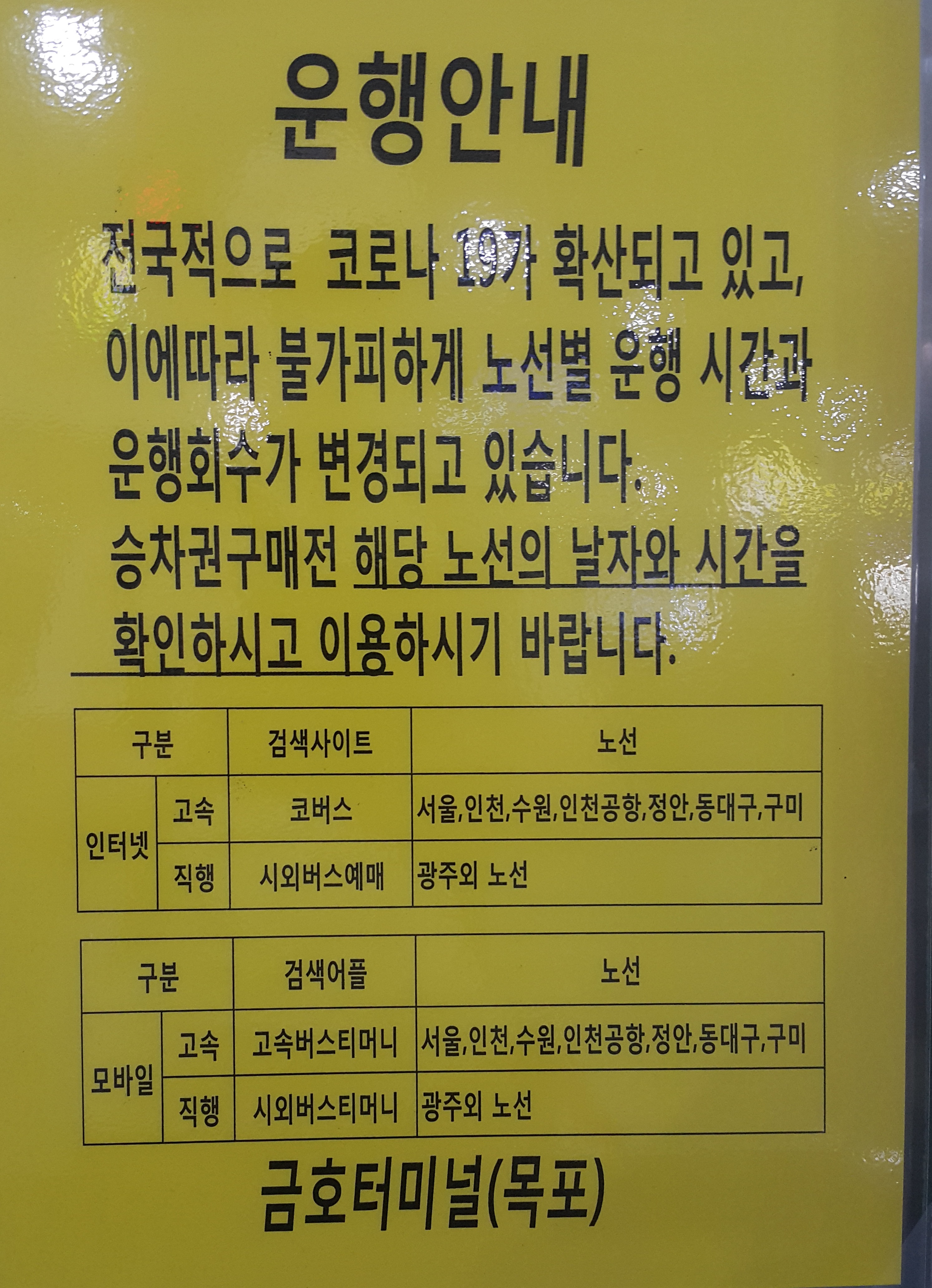 목포시외버스터미널 시간표