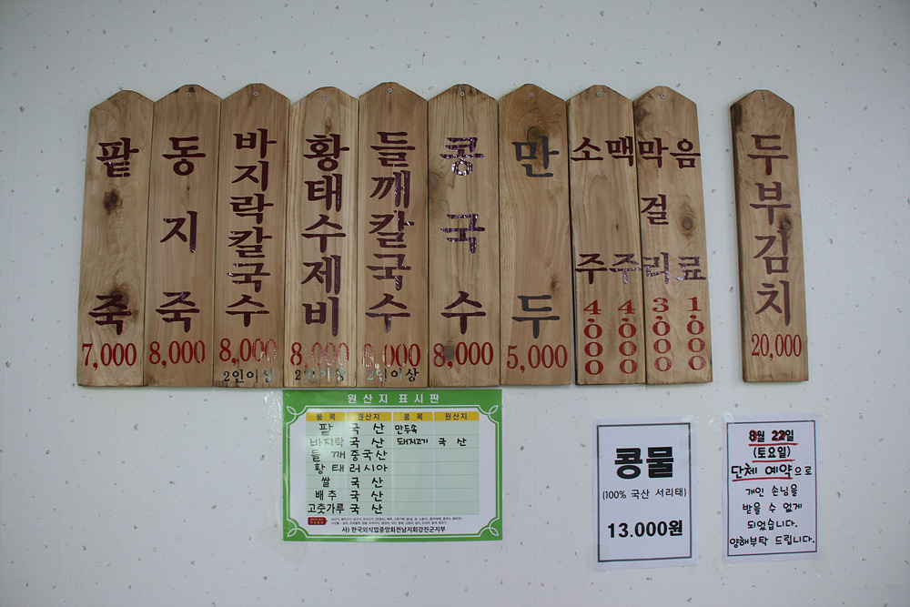 메뉴판은 나뭇판에다 인쇄를 하였는데요