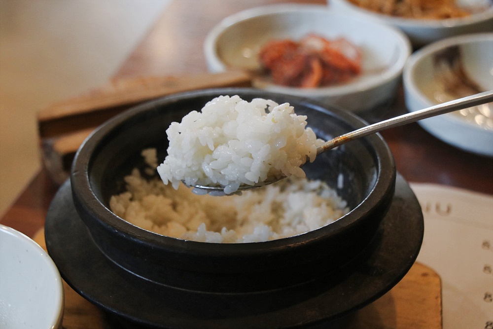 돌솥밥을 한 숟가락 들어보니 윤기가 자르르 흐르는 게 맛 또한 좋을 것으로 보입니다.