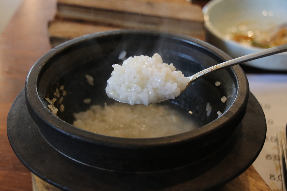 돌솥에 있는 밥을 덜어 밥그릇에 담고 돌솥에는 물을 부어 숭늉을 만들어 봅니다.