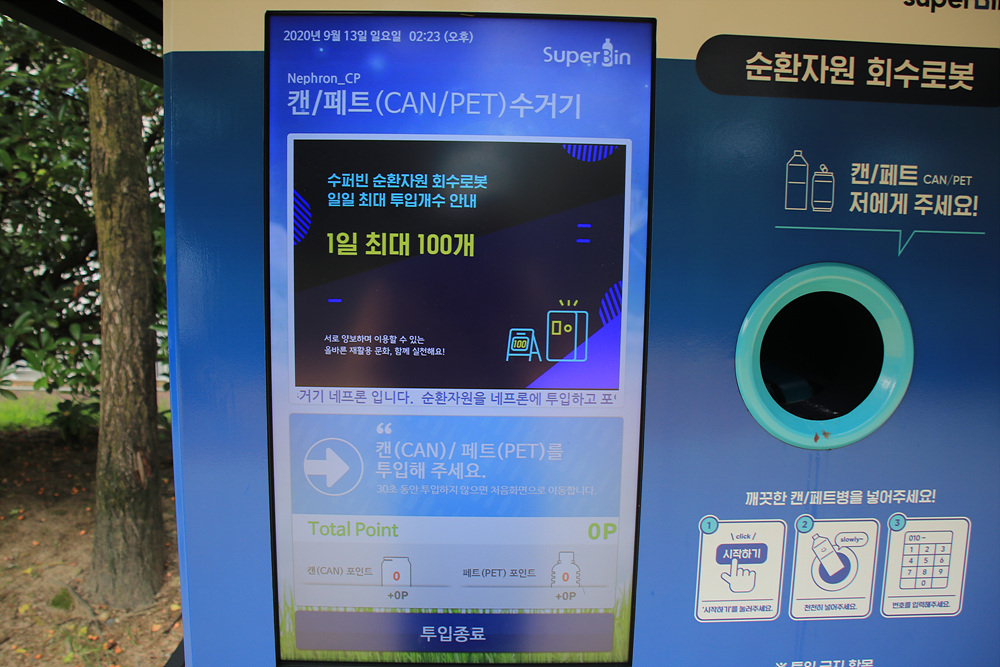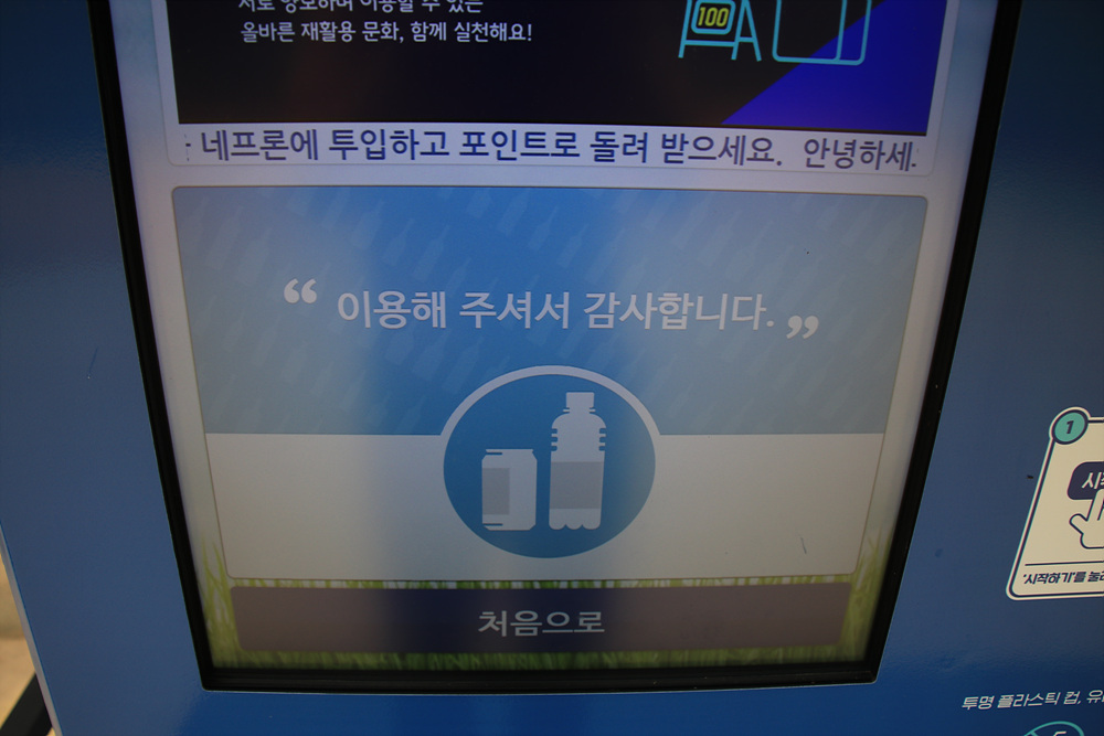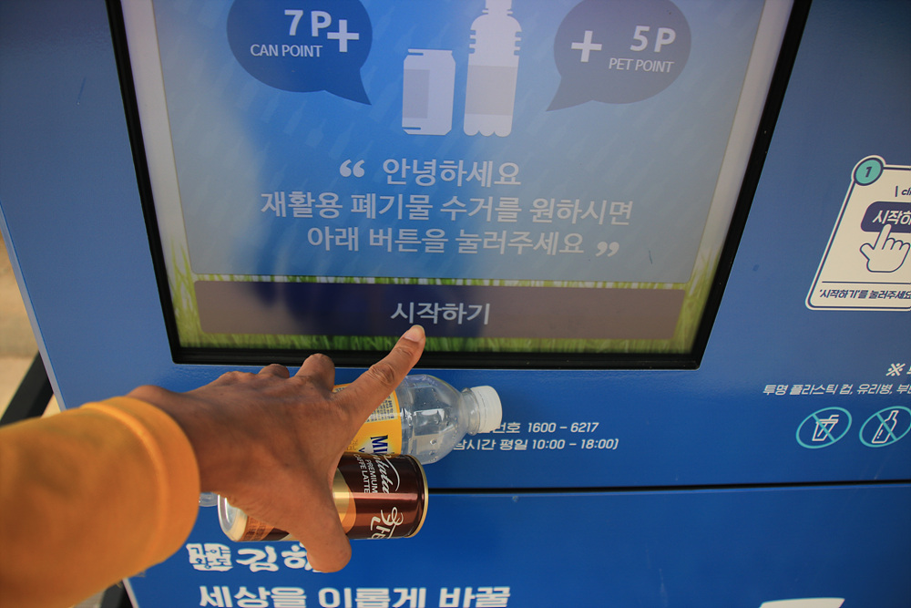 이후, 휴대폰 번호를 입력하면 캔은 7포인트, 페트병은 5포인트가 적립되며,