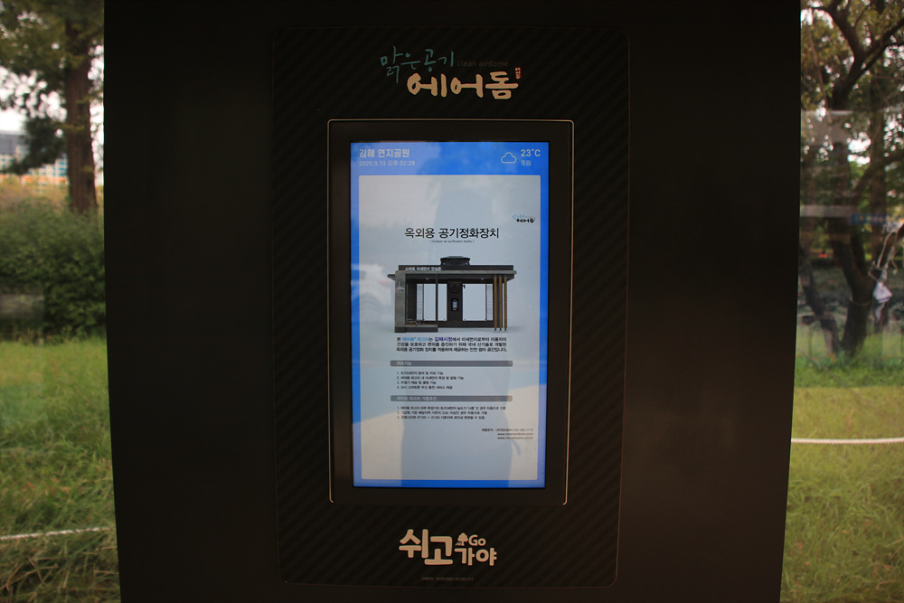 이곳은 옥외형 공기정화장치인 맑은 공기 에어돔 파고라입니다.