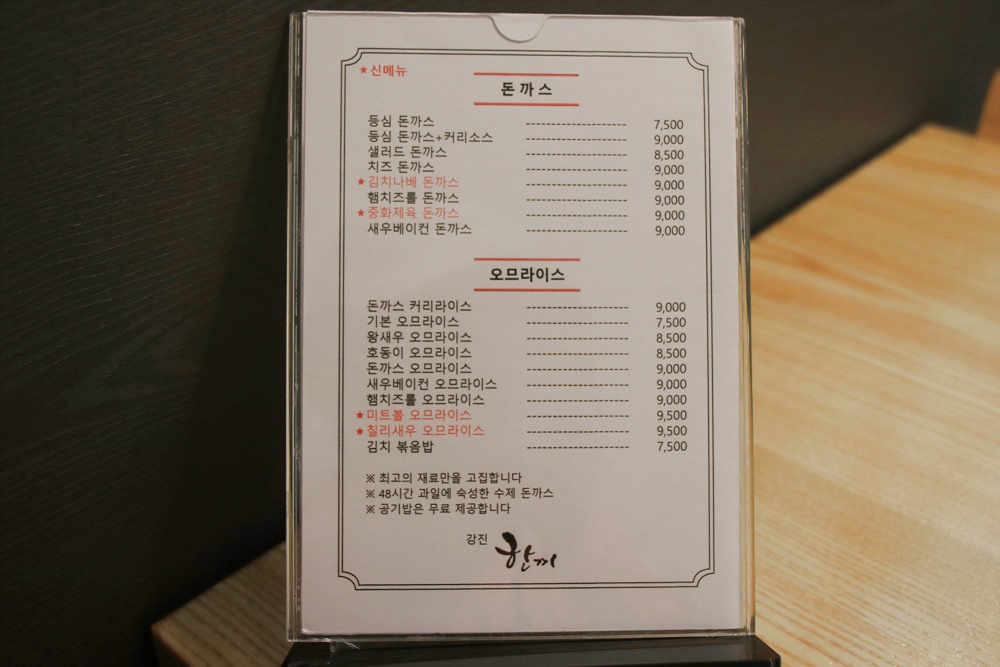 메뉴판을 보면 수제 돈가스, 일본식 라면, 오므라이스가 주요 메뉴인데요