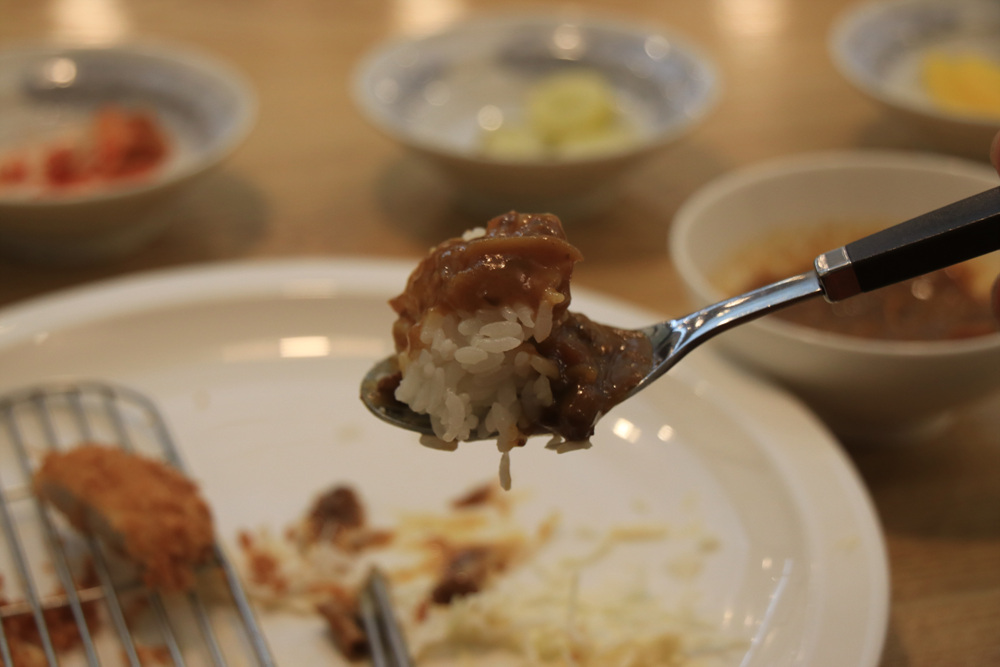 그리고 일본식 커리큘럼 소스도 주문하였는데 여기에 돈가스를 찍어 먹으니