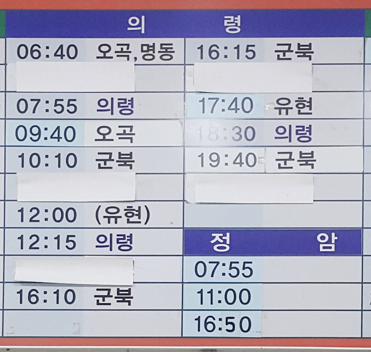 함안 출발 마산, 대산, 정곡, 춘곡, 진주, 파수, 입곡, 가야동 방면.