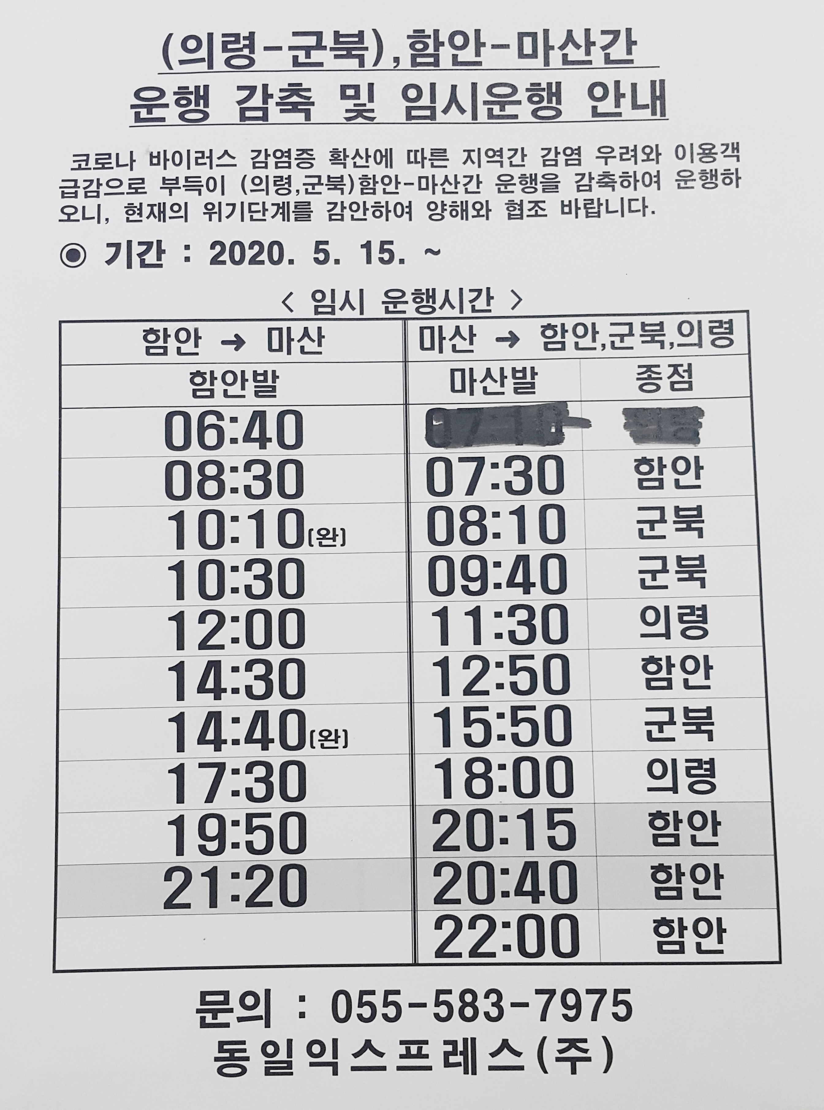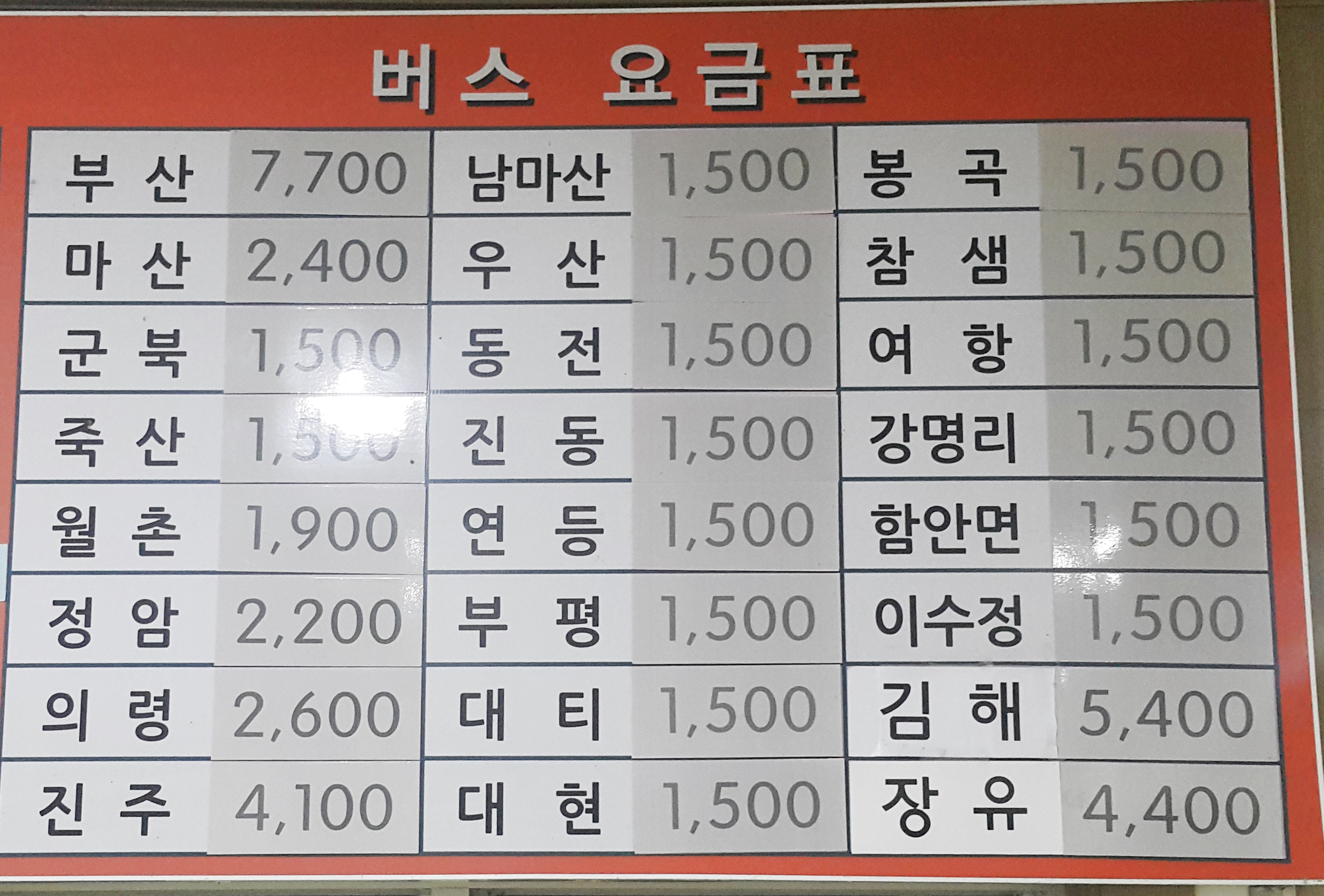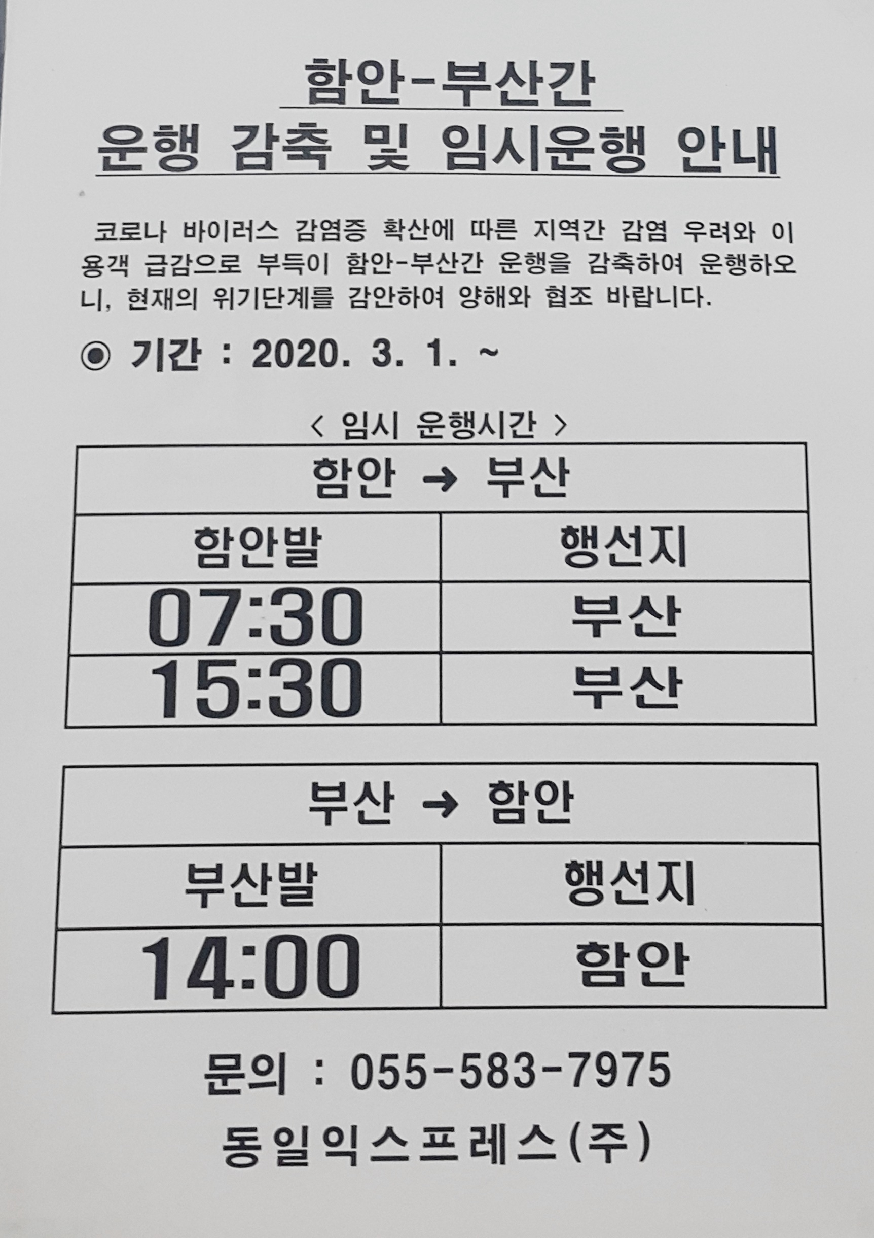 함안 출발 마산, 대산, 정곡, 춘곡, 진주, 파수, 입곡, 가야동 방면.