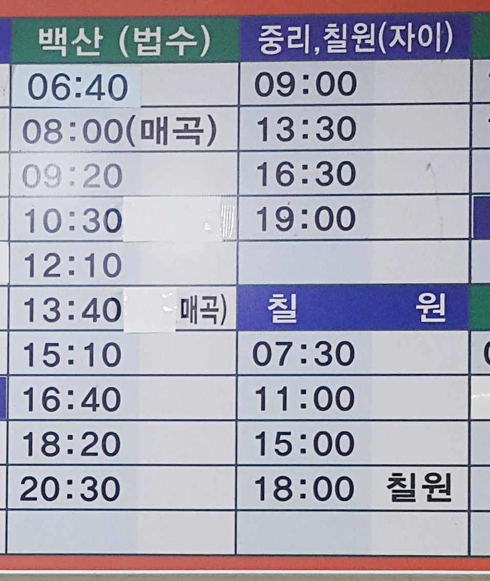 함안 출발 백산, 법수, 매곡, 중리, 칠원 방면.